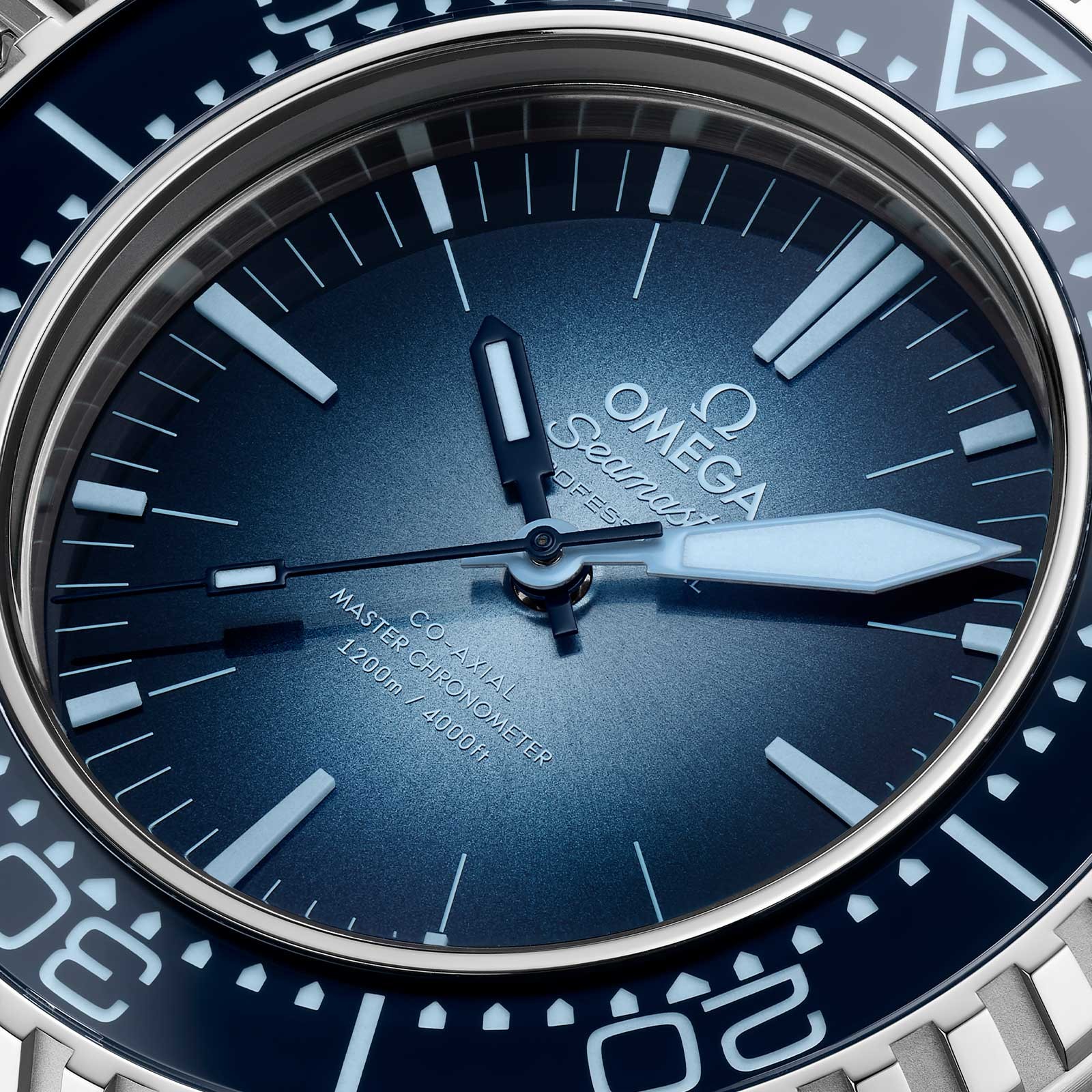 This special Ploprof takes its design cues from OMEGA’s 1970s original. Crafted in O-MEGASTEEL, it has a sun-brushed dial in OMEGA’s own Summer Blue with a gradient finish to reflect the watch’s level of water resistance. The bezel is produced in transparent sapphire crystal, varnished blue on the back, to reveal the light blue diving scale beneath. The iconic mono-bloc case includes the famous screwed-in crown and the characteristic security pusher at 2 o’clock, which on this edition sports a ring in blue ceramic. In keeping with the colour code, OMEGA has filled the varnished hands and indexes with a unique light blue Super-LumiNova. Turning the watch over reveals a laser-engraved commemorative Seamaster logo, framed by engraved waves and depicting a trident-bearing Poseidon and two seahorses: OMEGA’s 1956 original and the brand’s current design. Behind which sits the OMEGA Co-Axial Master Chronometer calibre 8912. An original-style blue rubber strap completes the look. Shop OMEGA watches at Chisholm Hunter today.