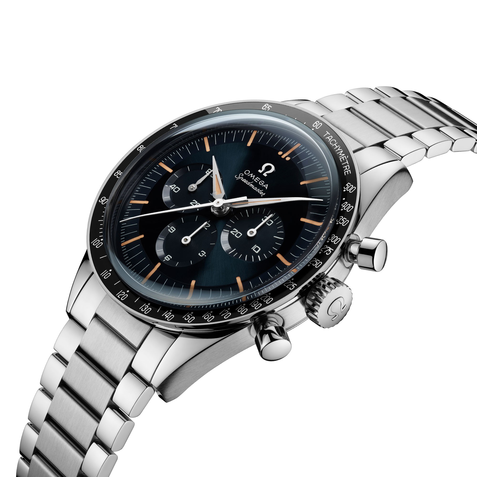The 39.70 mm case is crafted in polished and brushed stainless steel and features a “flat links” bracelet with OMEGA’s patented comfort release adjustment system. The bezel ring is presented in black aluminium and includes the legendary tachymeter scale with an emblematic “Dot Over Ninety”.