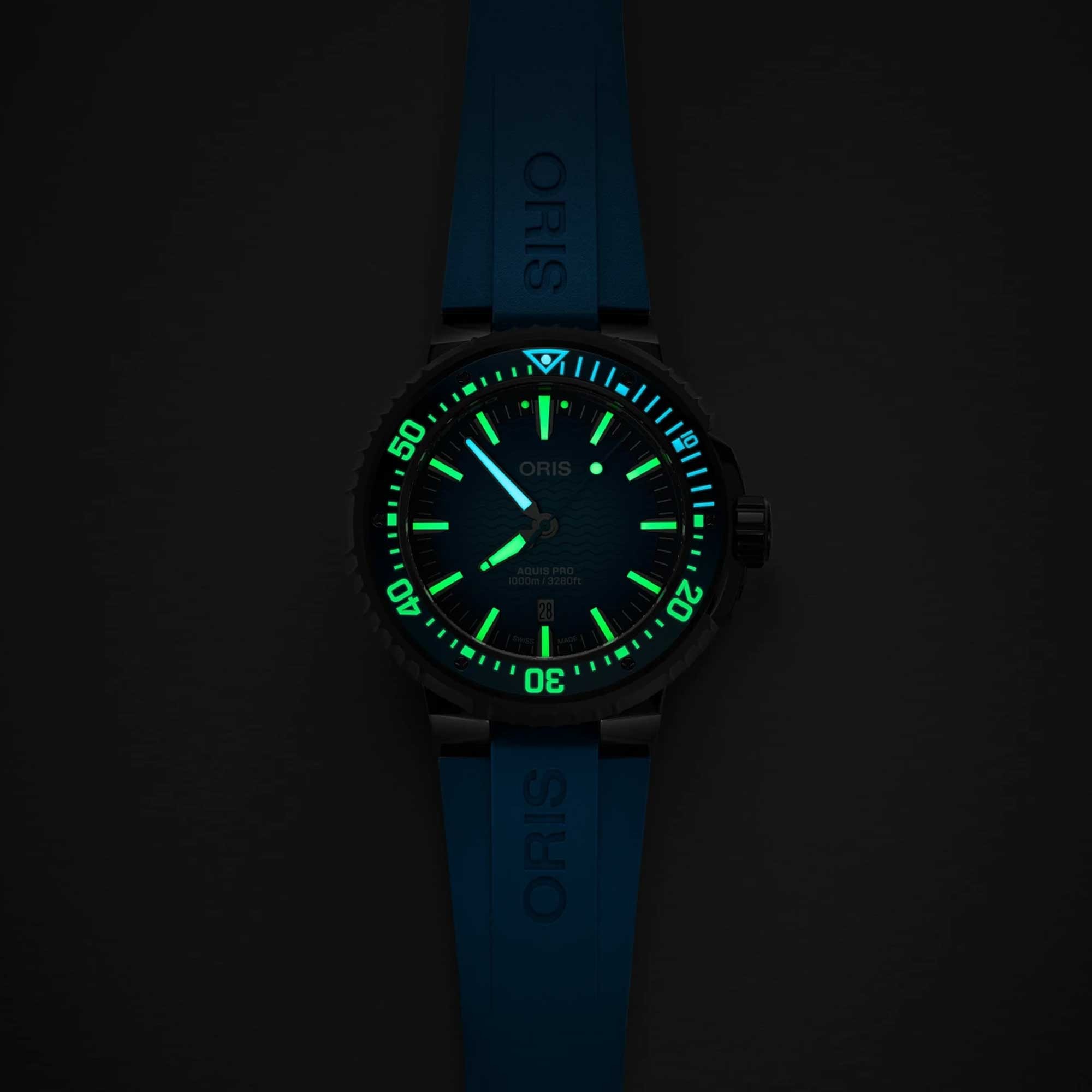 The Oris Aquis Pro 1000m Mens Watch 01 733 7801 7255-Set is developed alongside professional divers and built for extreme depth.