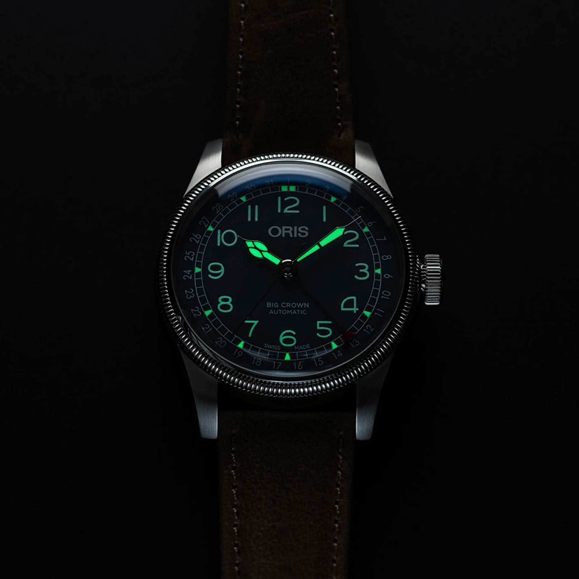 This style is a timeless classic that’s been in constant production since 1938 and continues to capture Oris’s independent spirit. Initially created for pilots, this piece retains its orginal design integrity. Crafted with a robust stainless steel case, this watch combines durability with elegance. Measuring 40mm in diameter, it boasts a striking round shape that fits comfortably on the wrist. The sapphire crystal glass, domed on both sides with an anti-reflective coating inside, guarantees clarity and protection against scratches, making it suitable for any daily adventure.