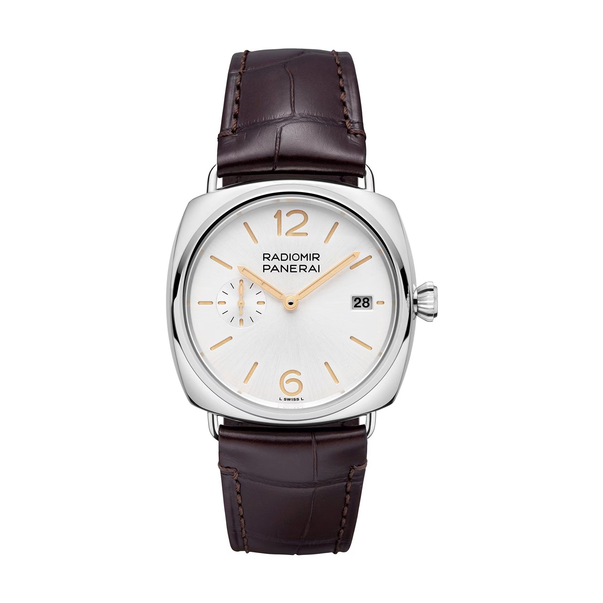 Experience timeless elegance with the Panerai Radiomir Quaranta Automatic 40mm Men's Watch PAM01570. This exquisite timepiece features a striking white dial adorned with numerals and baton markers, offering clarity and style at a glance. The P.900 Calibre movement ensures precision with a power reserve of approximately 72 hours.