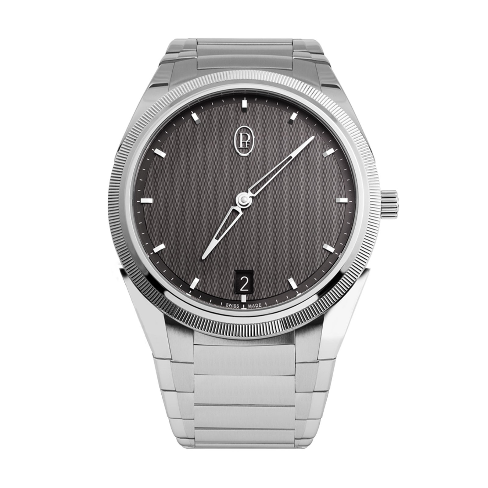 The elegant details and robust features combined with the high performance makes the Parmigiani Fleurier Tonda PF Micro Rotor Mens Watch PFC914-1020001-100182 the perfect luxury sports watch. The compact 40mm stainless steel case holds a sleek grey uncluttered dial with a date window at 6 o’clock. The ergonomic case and bracelet fit the wrist snugly and the screw-down crown adds to the robust nature of this luxury timepiece.