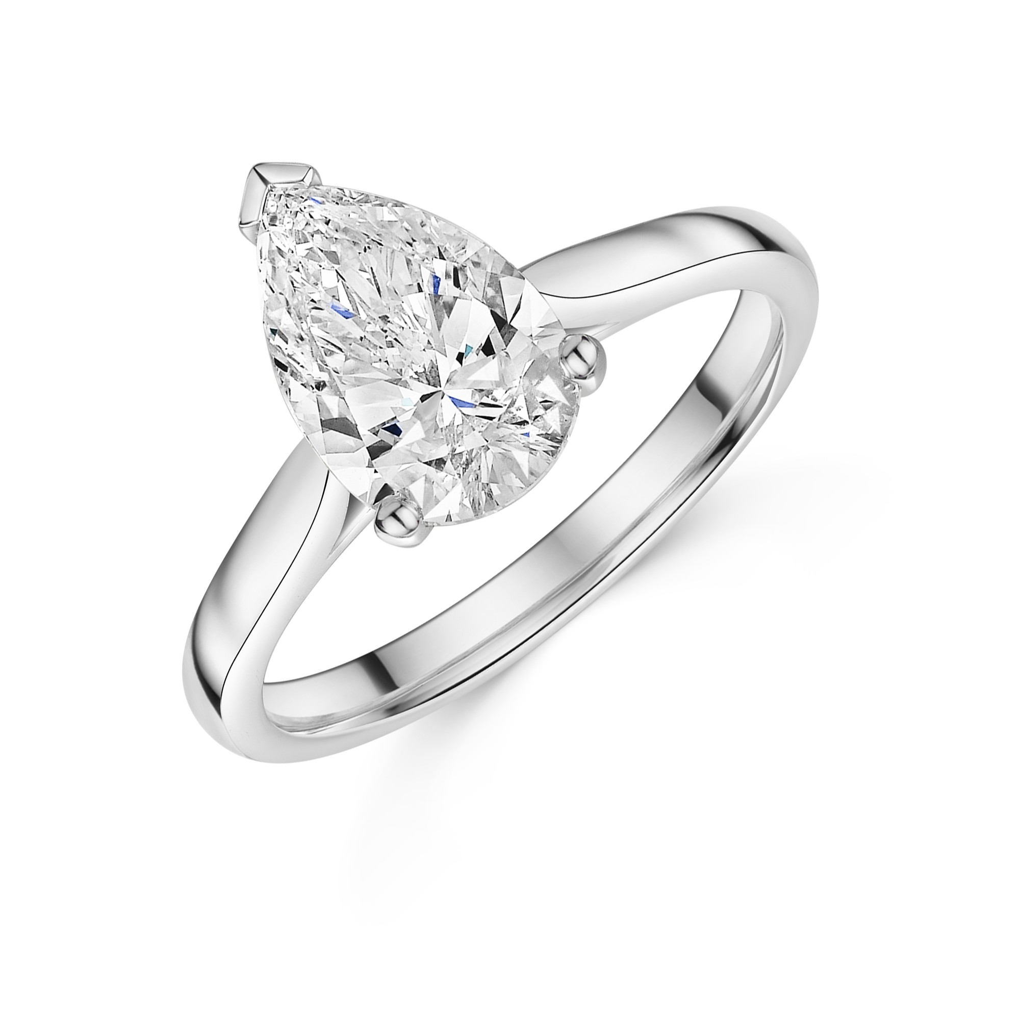 Platinum Pear Cut 2.00ct Lab Grown Diamond 3 Claw Solitaire Ring