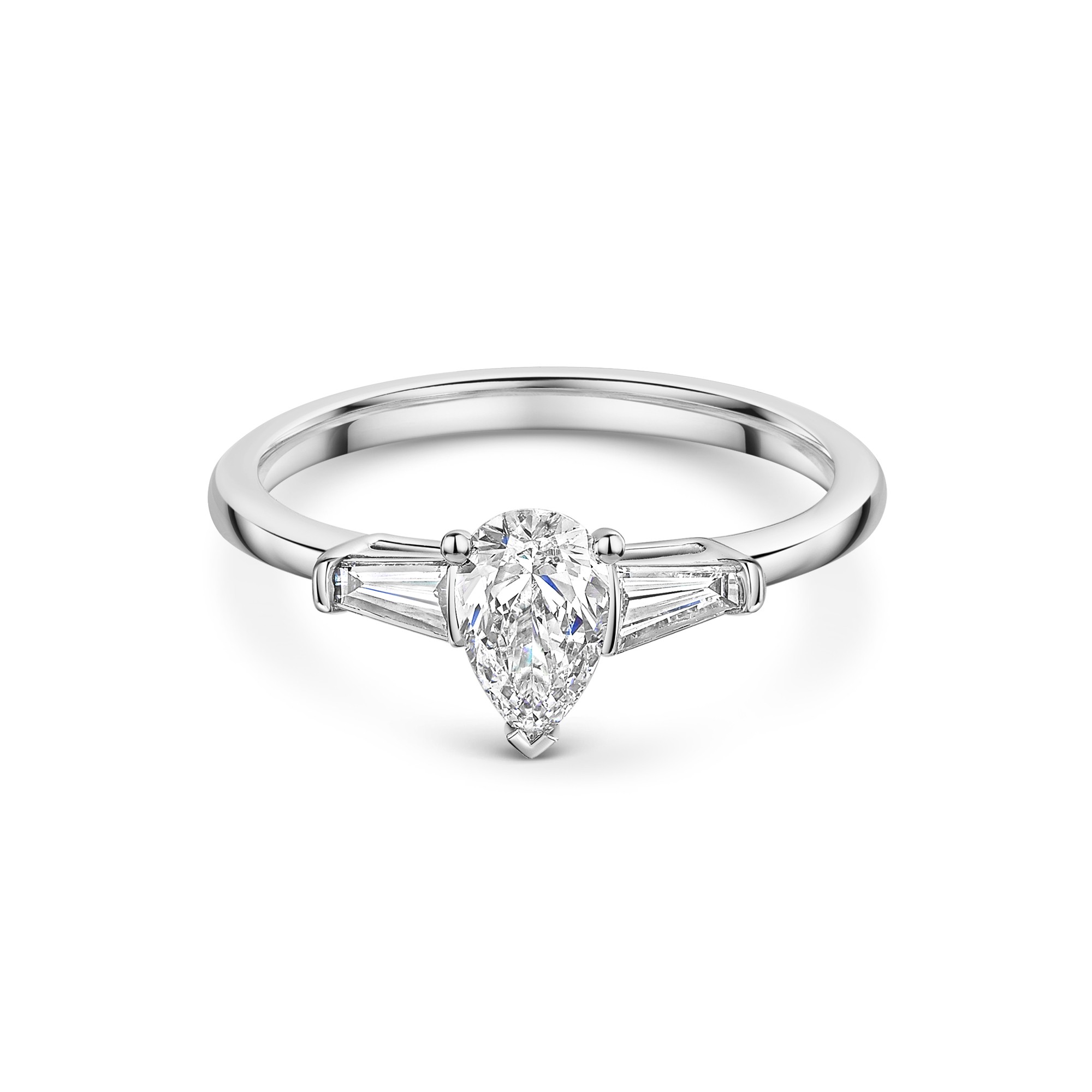 Platinum 0.50ct Pear Diamond Solitaire Ring with Baguette Cut Shoulders Platinum 0.50ct Pear Diamond Solitaire Ring with Baguette Cut Shoulders Platinum 0.50ct Pear Diamond Solitaire Ring with Baguette Cut Shoulders