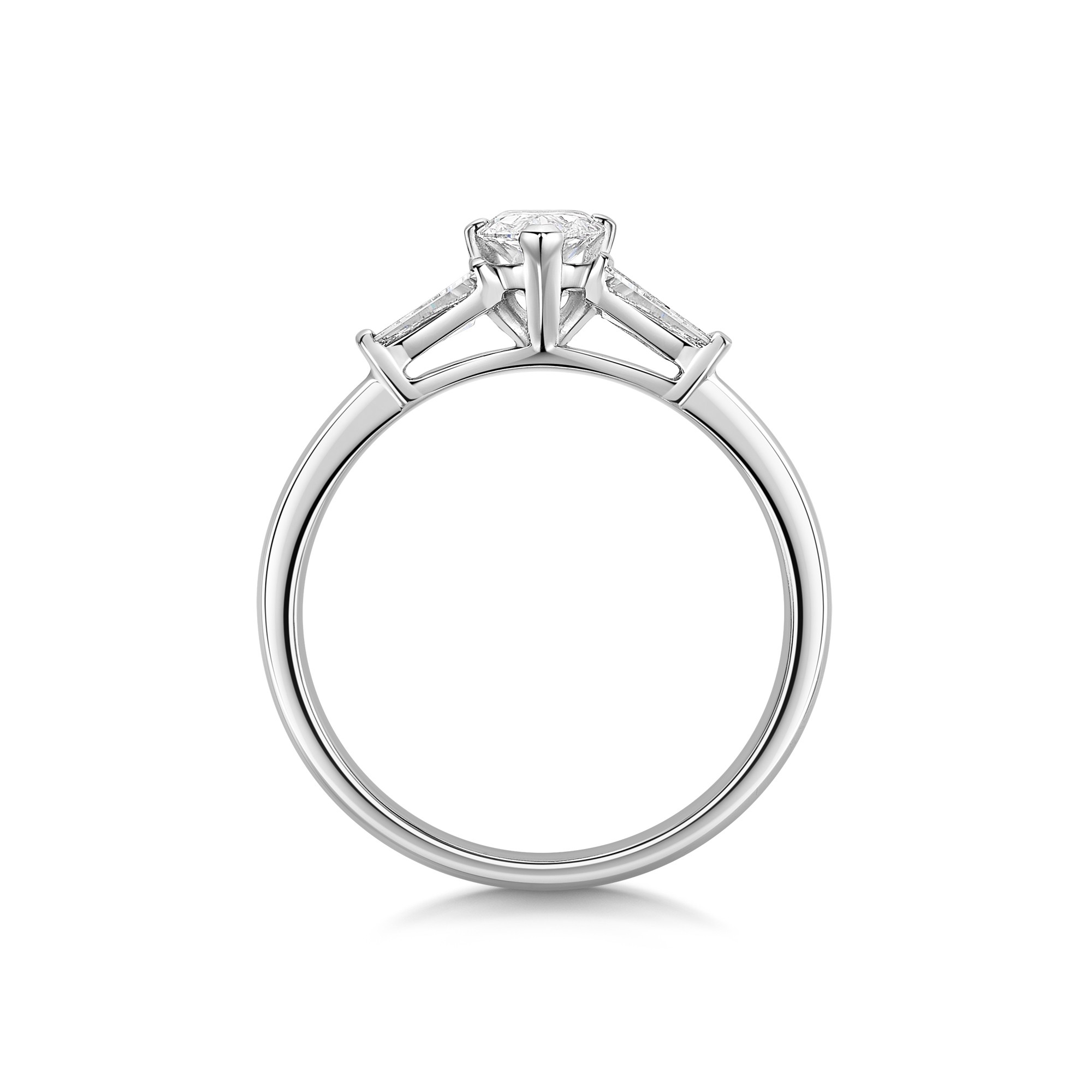 Platinum 0.50ct Pear Diamond Solitaire Ring with Baguette Cut Shoulders