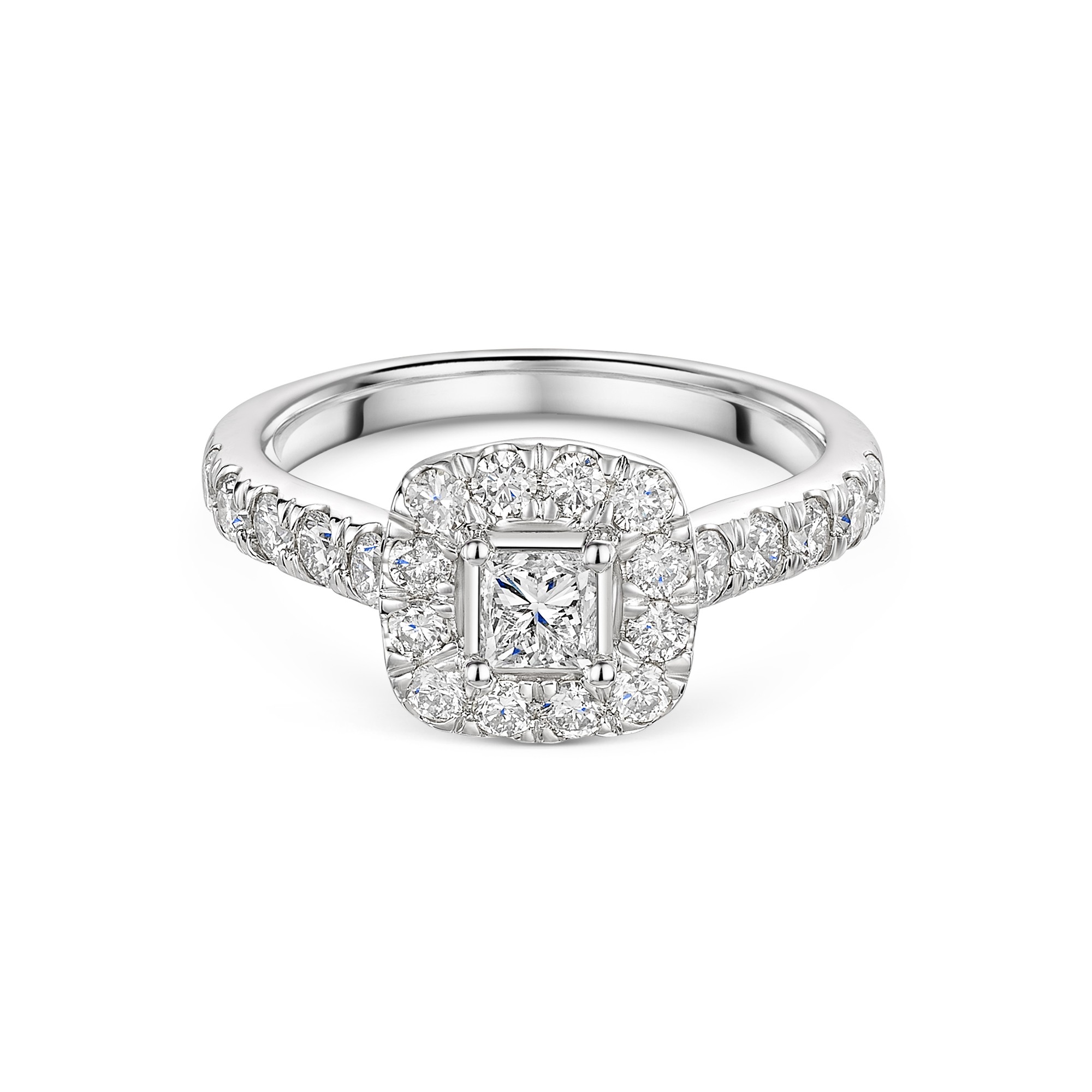Platinum 1.00ct Princess Cut Diamond Halo Ring