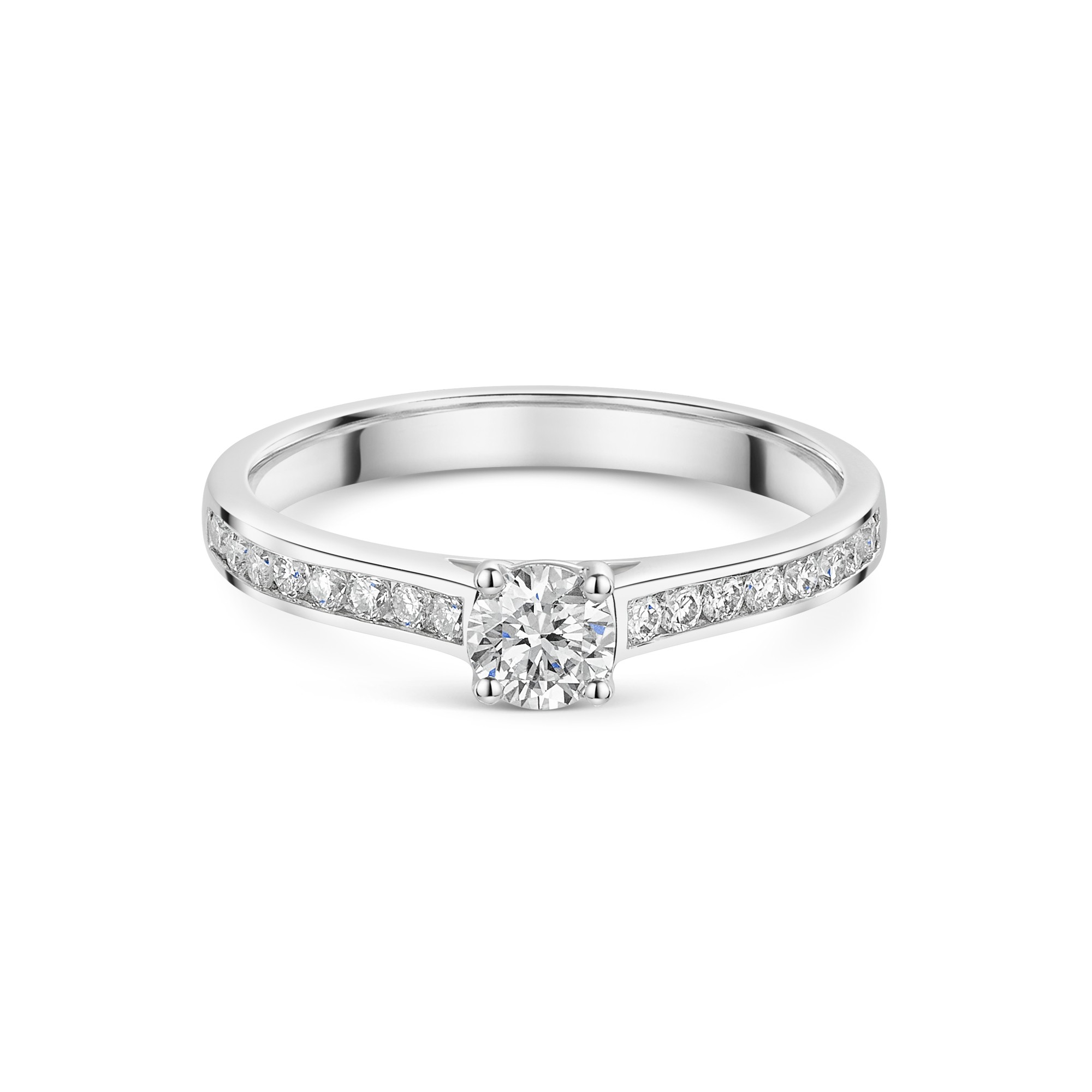 Platinum 4 Claw 0.33ct Round Brilliant Diamond Solitaire Ring with Channel Set Shoulders Platinum 4 Claw 0.33ct Round Brilliant Diamond Solitaire Ring with Channel Set Shoulders Platinum 4 Claw 0.33ct Round Brilliant Diamond Solitaire Ring with Channel Set Shoulders