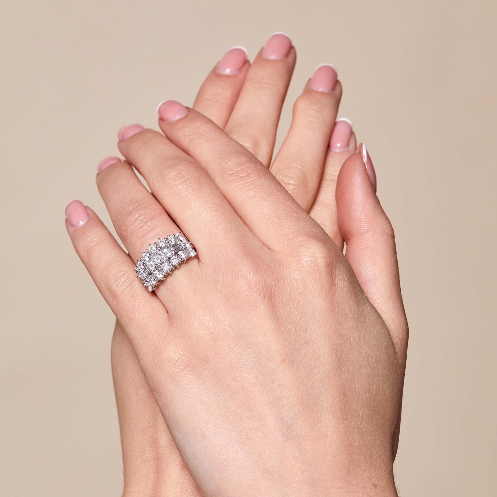 Platinum Baguette and Brilliant Cut 2.80ct Diamond Cluster Ring