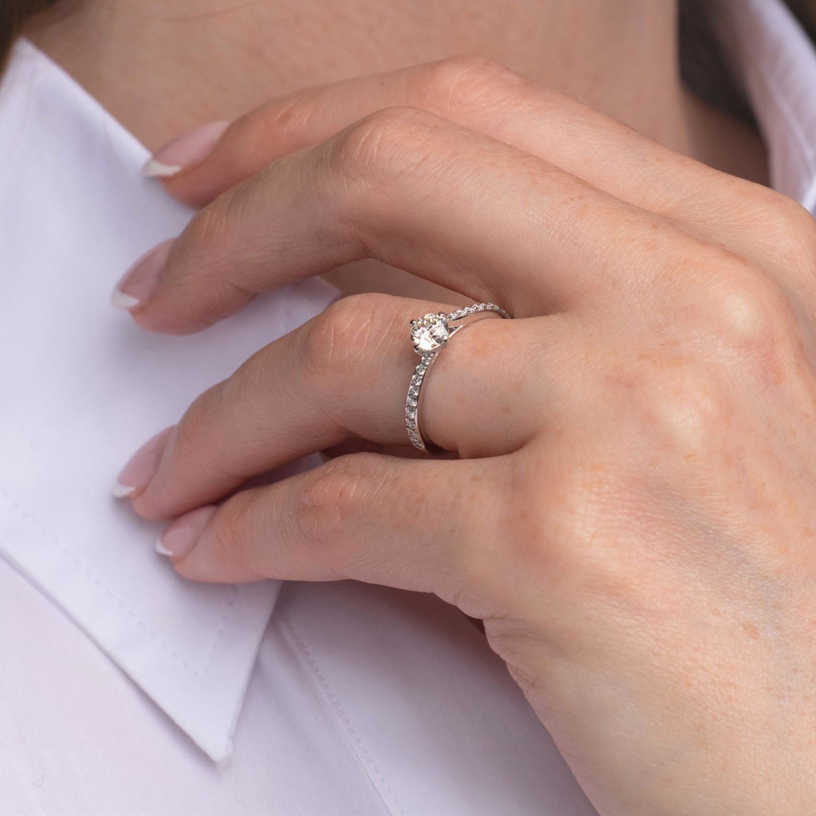 Declare your eternal love with our Platinum Brilliant Cut 0.50ct Diamond Solitaire Ring. Designed in a four-claw setting with diamond twist shoulders, the round brilliant cut diamond sits proudly in the centre as a sparkling statement. An engagement ring perfect for complementing their everyday attire, your loved one will treasure it forever. Diamond Information: Cut - Round Brilliant, Colour - G-H, Clarity - SI1, Carat Weight - 0.50ct.