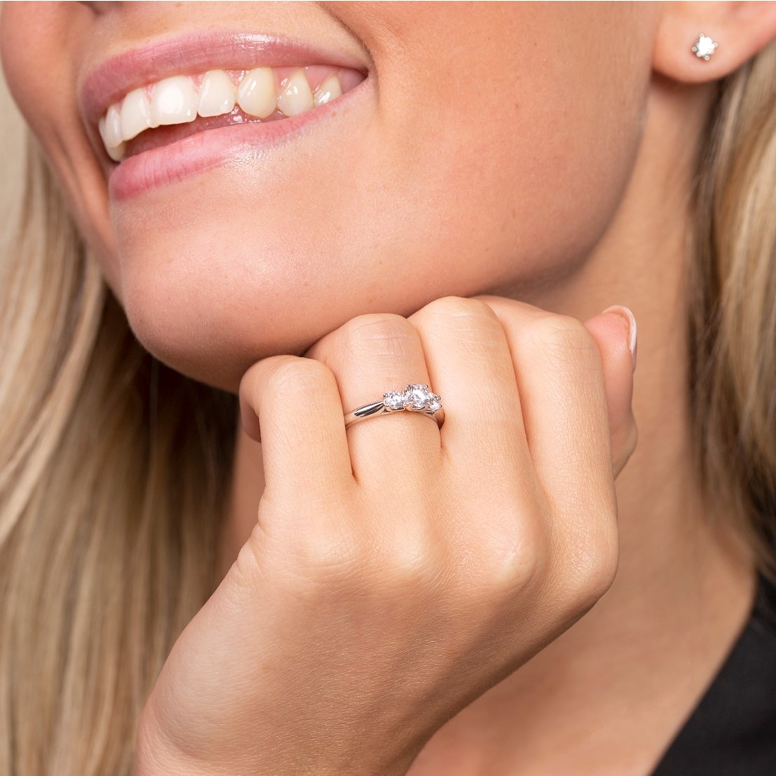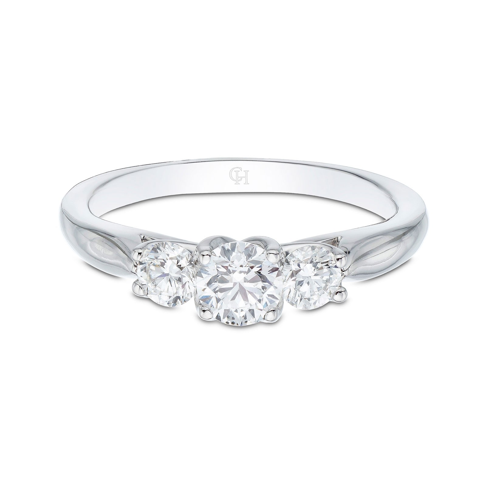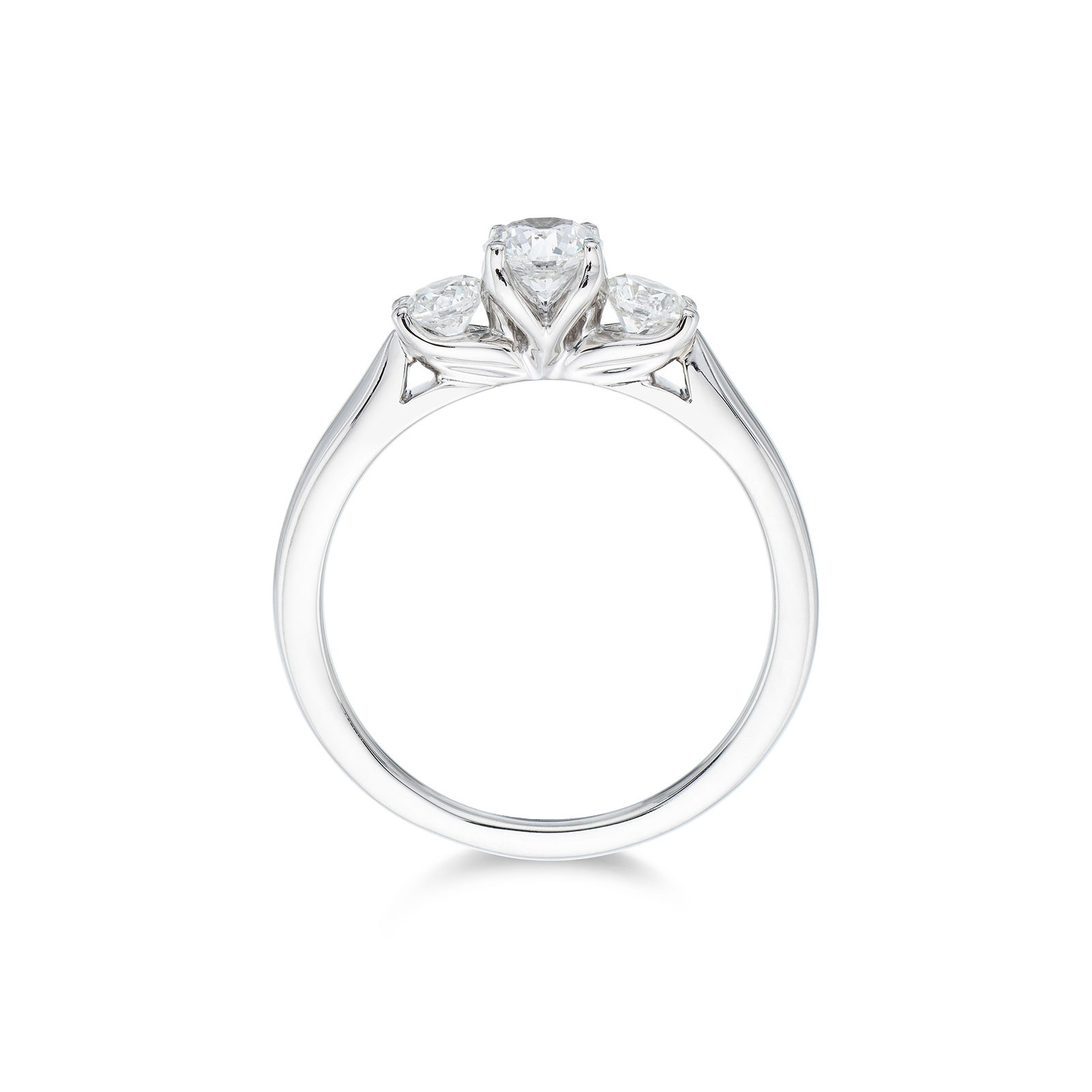 Sweep your loved one off their feet and prove your love is eternal with this simply breathtaking platinum 0.75 total carat weight diamond engagement ring. Three round brilliant cut graduated diamonds, set in a 4 claw setting, sit together in a romantic design that perfectly represents the past, present and future of your love story.