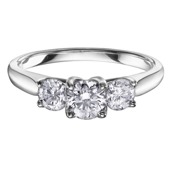 Begin the next chapter of your romantic love story with this ring that represent the past, present and future of your life together as a couple. Show your eternal love with this platinum 1.00 total diamond carat weight ring. Three round brilliant diamonds sit together on a polished platinum band in this beautifully elegant design.