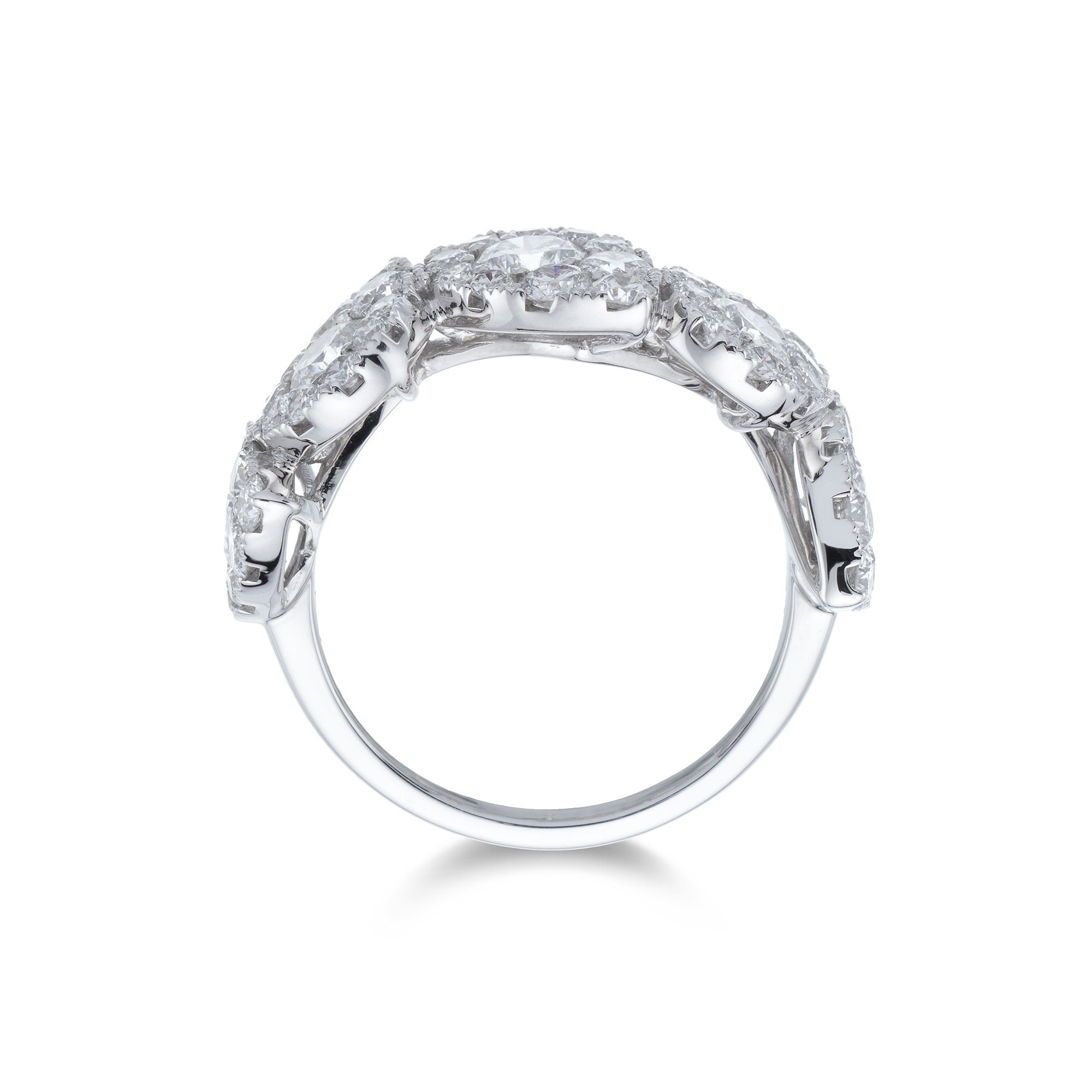The perfect gift for that someone special, this Chisholm Hunter exclusive 3.00 total diamond carat weight diamond ring is a wonderful way to celebrate an anniversary, mark an important mile stone, or just to say "I love you". Carefully selected round brilliant cut diamonds create pear shaped clusters that sit together on a polished platinum fancy band, making this truly wonderful and breath taking; a ring that will be treasured for a lifetime.