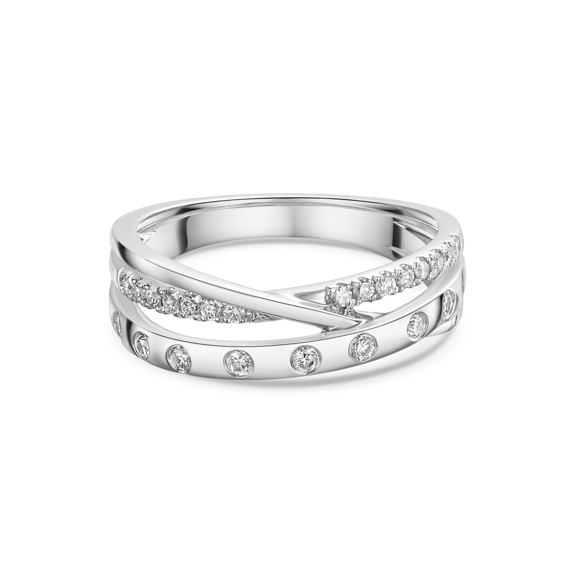 With a total carat weight of 0.25ct, it's a perfect addition to any jewellery collection. The crossover design adds a modern twist, combining classic elements with contemporary flair.