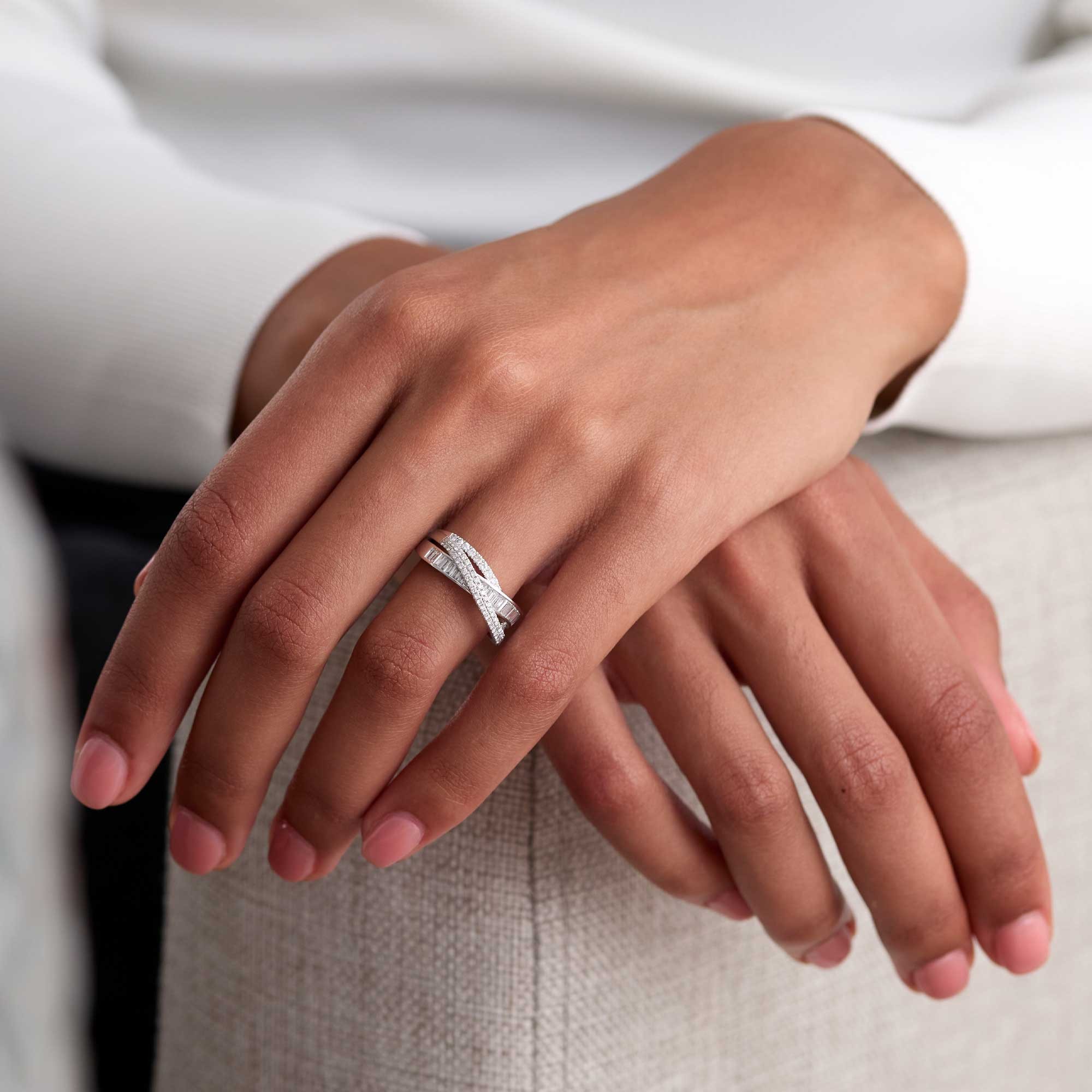 Platinum 0.80ct Diamond Cross Over Fancy Band