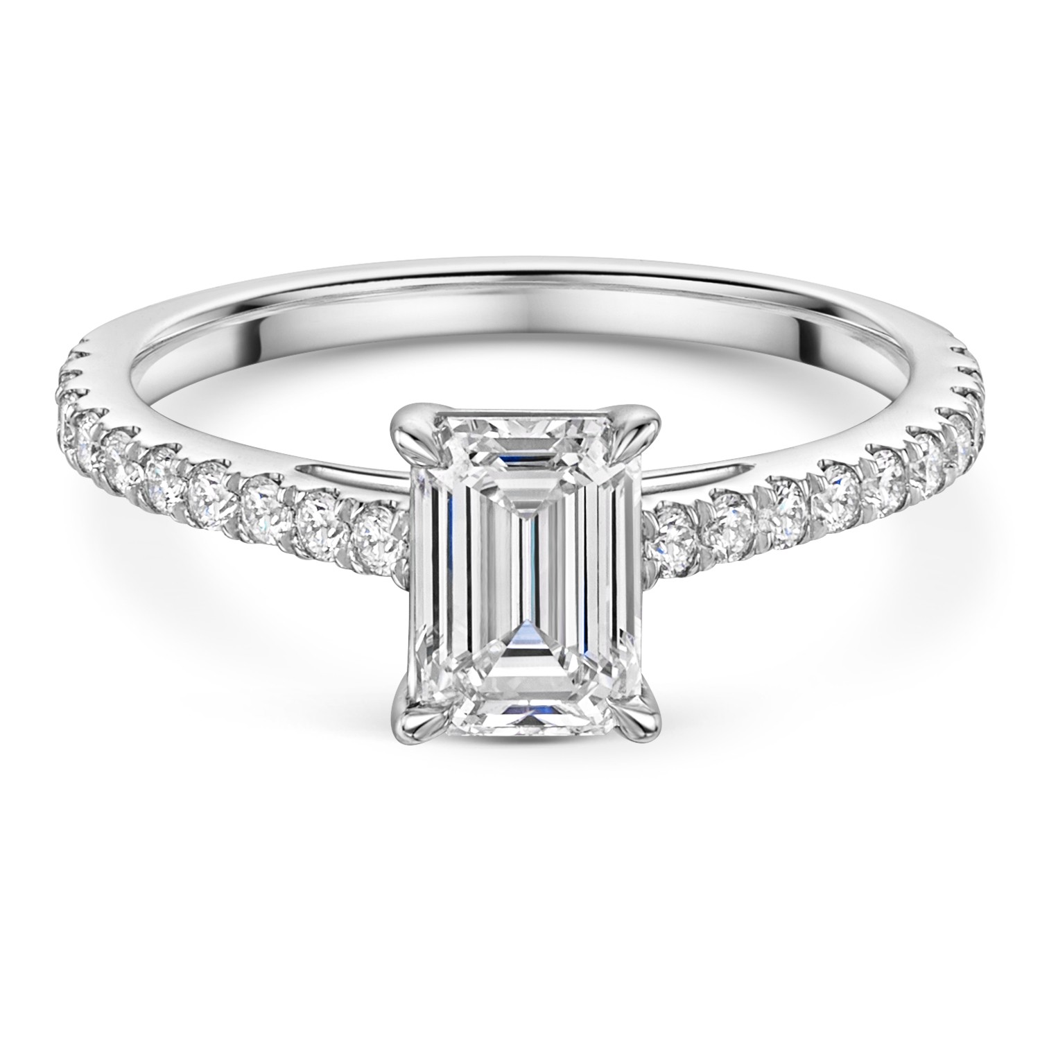 Platinum Lab Grown 1.00ct Emerald Diamond Shoulders Ring