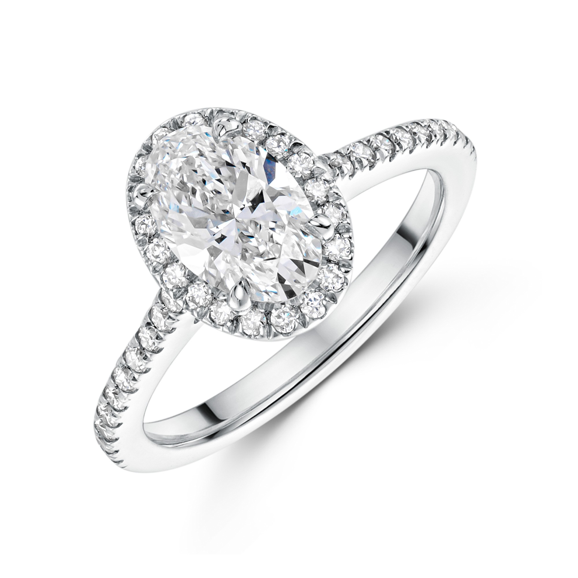 Platinum Lab Grown 1.00ct Oval Diamond Halo Shoulders Ring