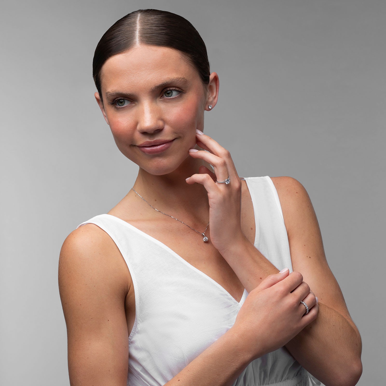 Enhance your neckline with the breath taking beauty of the Platinum Lab Grown 1.00ct Round Brilliant Diamond Pendant. This exquisite pendant showcases a brilliant lab-grown round diamond, set in luxurious platinum for a timeless and elegant look. At the heart of this pendant gleams a captivating lab-grown round brilliant diamond, weighing 1.00 carat. The diamond's expertly cut facets maximize its brilliance, allowing it to sparkle with exceptional fire and radiance. The platinum setting adds a touch of sophistication and durability to the pendant. The sleek and minimalist design of the pendant ensures that all attention is focused on the stunning diamond centre piece. This pendant comes with a delicate platinum chain, allowing it to gracefully rest on your neckline. The adjustable chain length allows for the pendant to be worn at the desired length. Diamond Information: Cut- Round Brilliant, Colour- F, Clarity- VS2, Carat- 1.00ct.