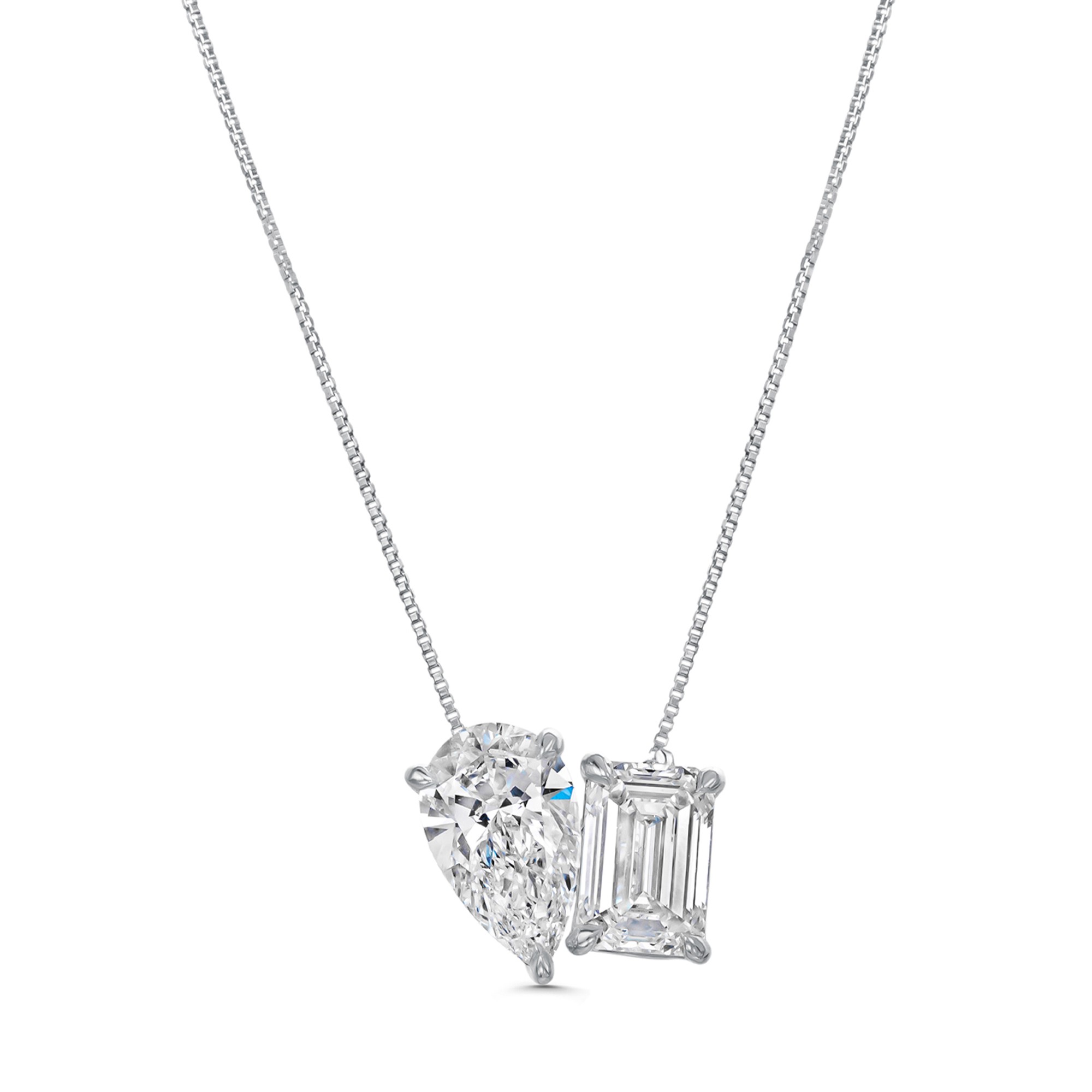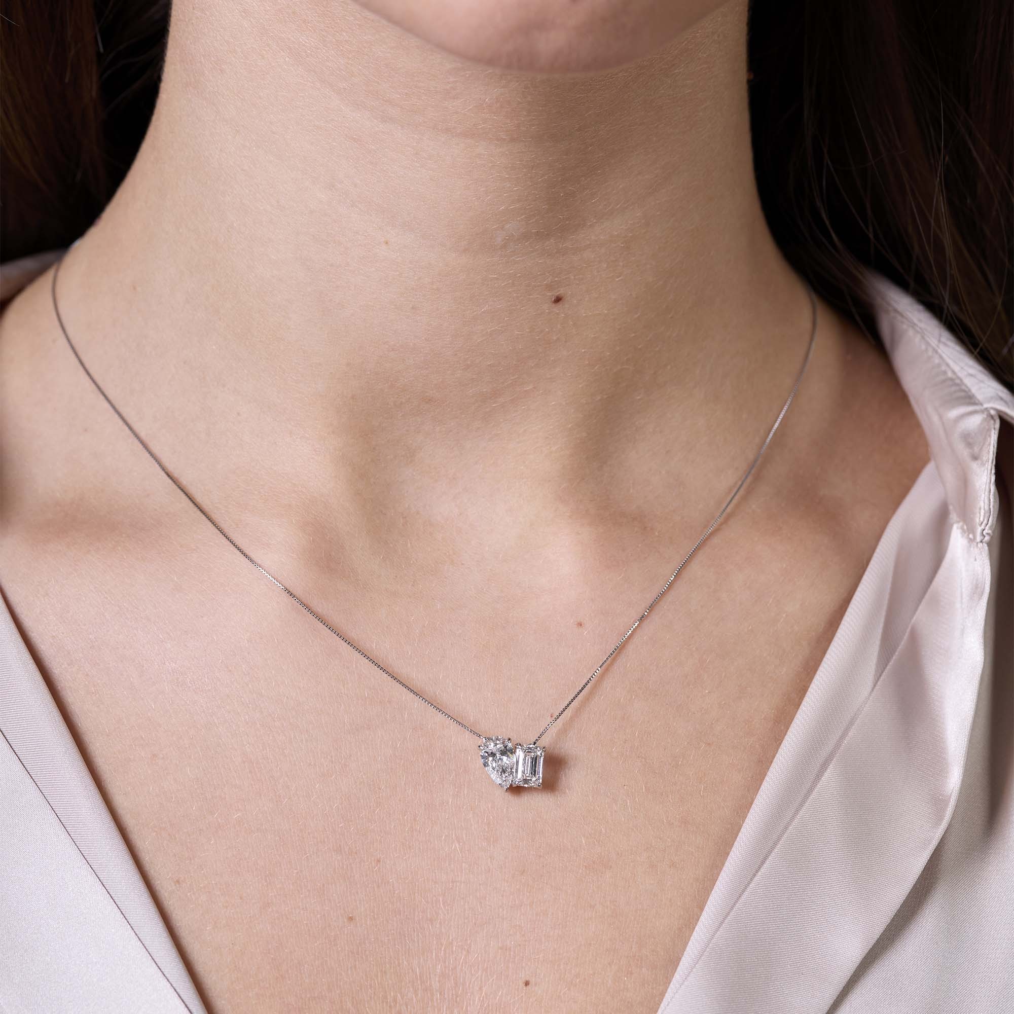Platinum Lab Grown 1.95ct Emerald and Pear Cut Diamond 'Toi Et Moi' 2 Stone Pendant