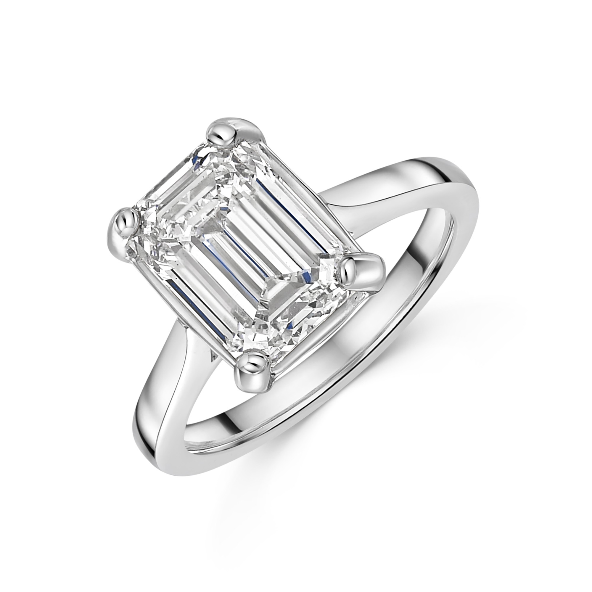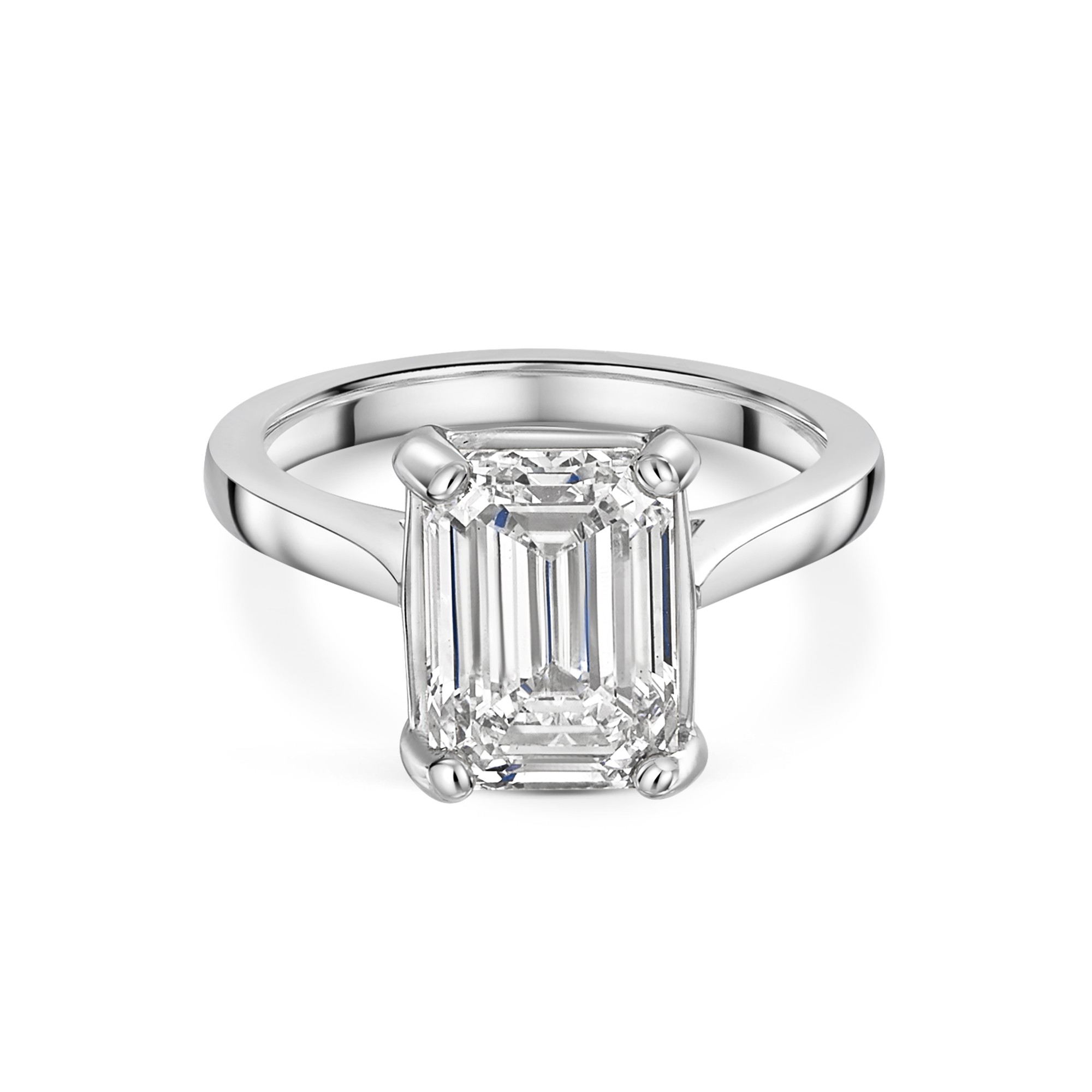 Platinum Lab Grown 4ct Emerald Diamond Solitaire Ring