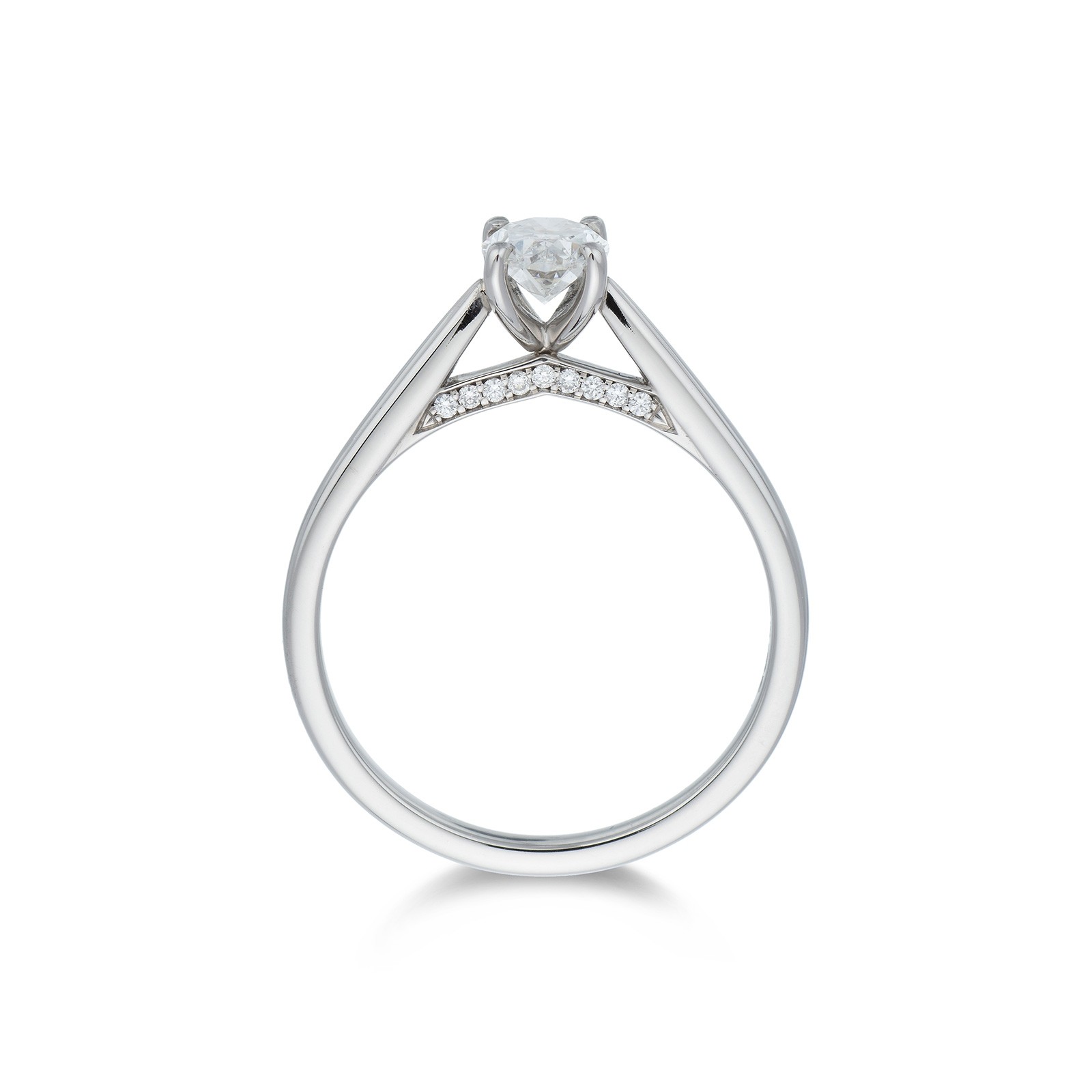 Platinum 0.75ct high v-shape oval cut with diamond detailing total weight 0.85ct