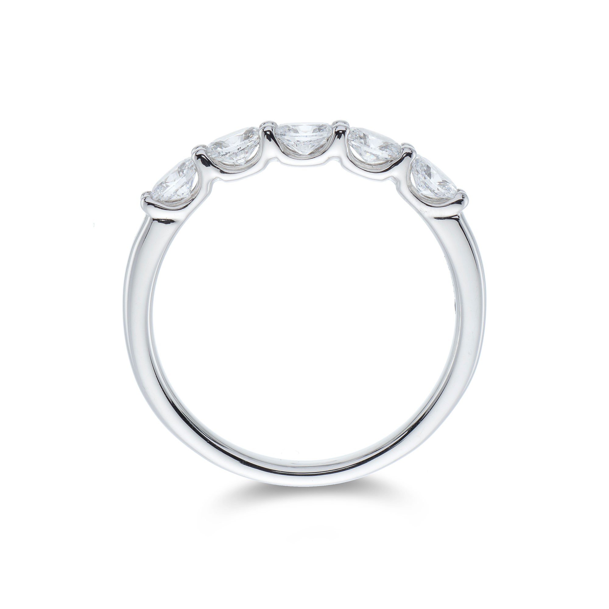 Combining a timeless sense of glamour and romance, this exclusive to Chisholm Hunter platinum diamond eternity wedding ring will take your breath away with its dazzling sparkle. Five oval cut diamonds sit in an east to west claw setting, with a 0.50 total carat diamond weight, which are claw set to maximise the amount of light into the diamond to showcase their fire and brilliance. Accompanied by a beautifully polished band this is a style that will have you falling head over heels in love and will melt your heart every time you see it. Diamond Information: Cut- Oval Cut, Colour - G-H, Clarity - SI1, Carat Weight - 0.50ct.