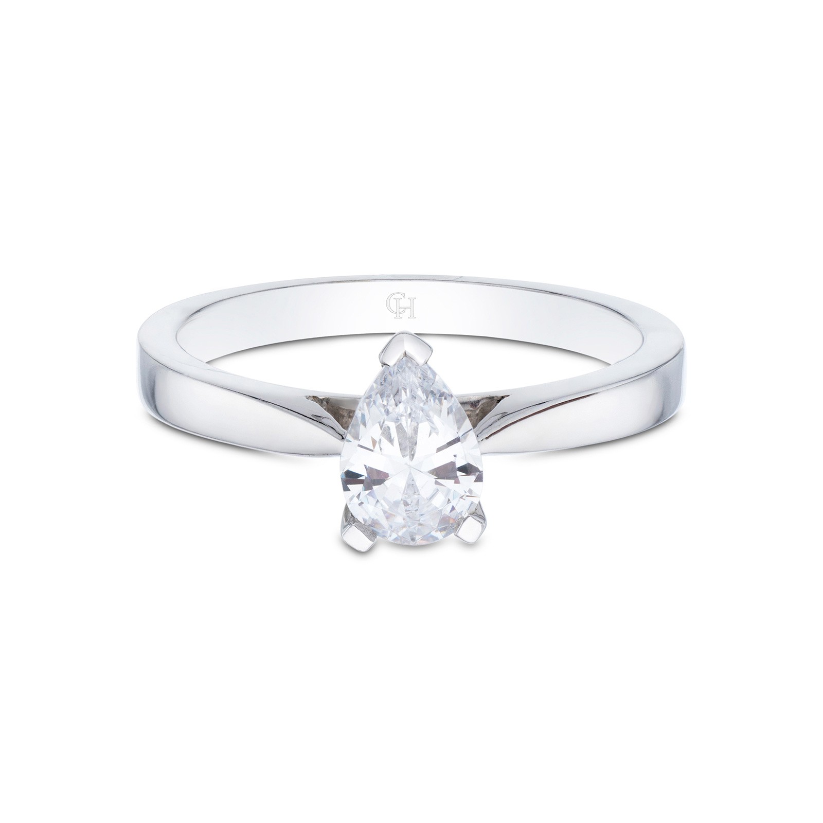 A truly timeless and classic design, present to your loved one this platinum 0.50ct diamond ring. The perfect finishing touch to your romantic proposal, a single pear shaped diamond solitaire is set in a 3 claw setting is a symbol of your everlasting love. This mesmerising piece has a beautifully polished band which tapers up to the diamond bringing it centre stage, sure to turn heads with its understated beauty. Diamond Information: Cut- Pear, Colour - G-H, Clarity - SI1-SI2, Carat Weight - 0.50ct.