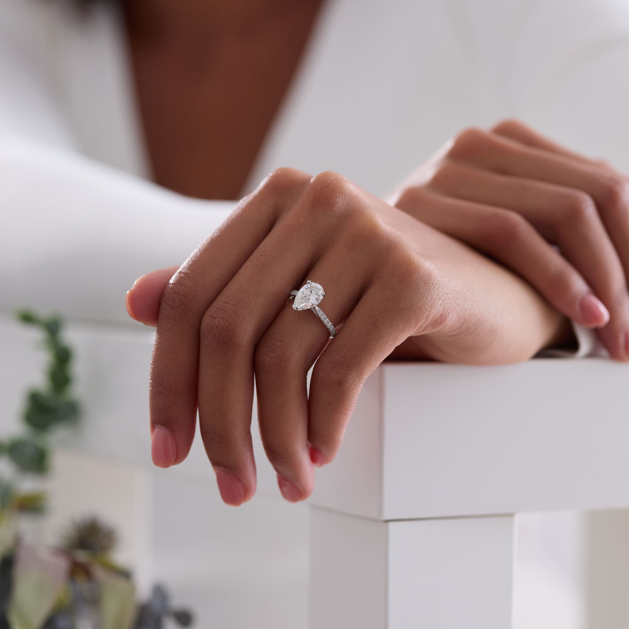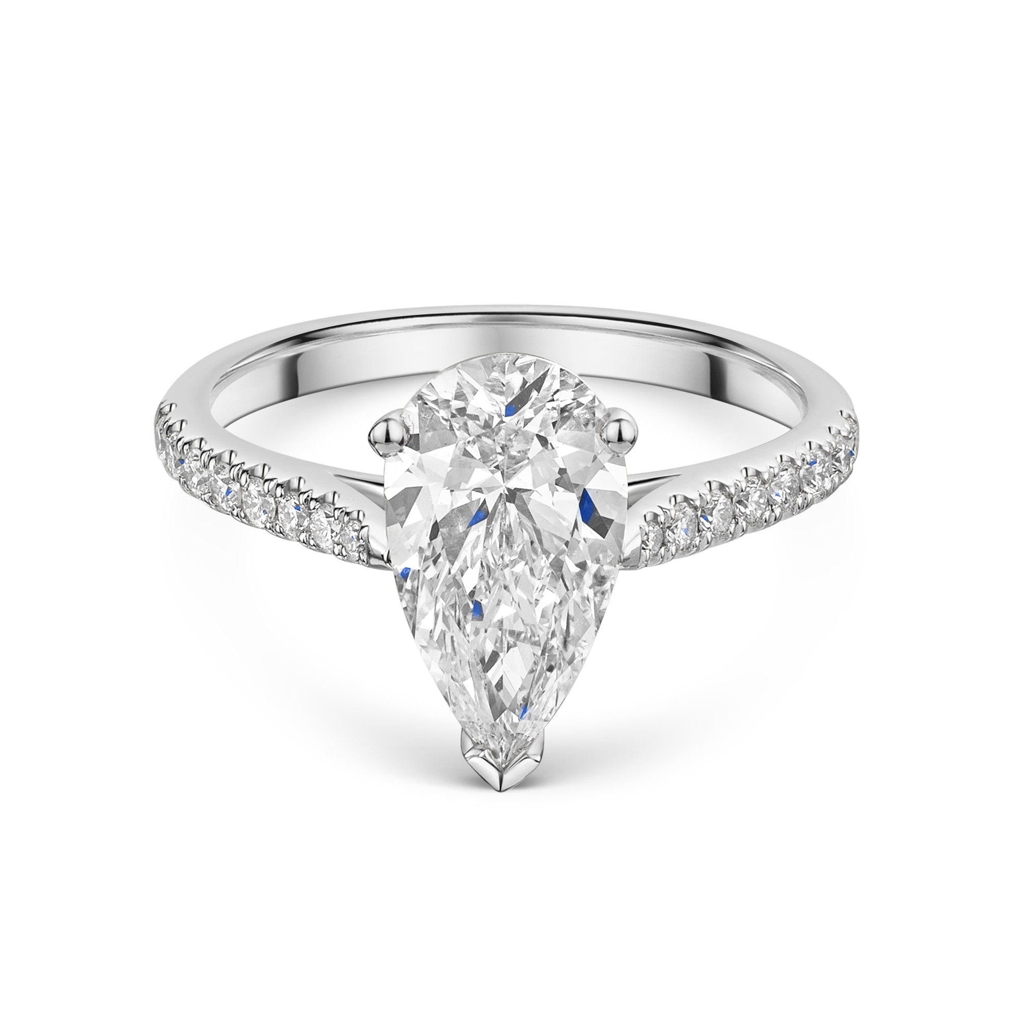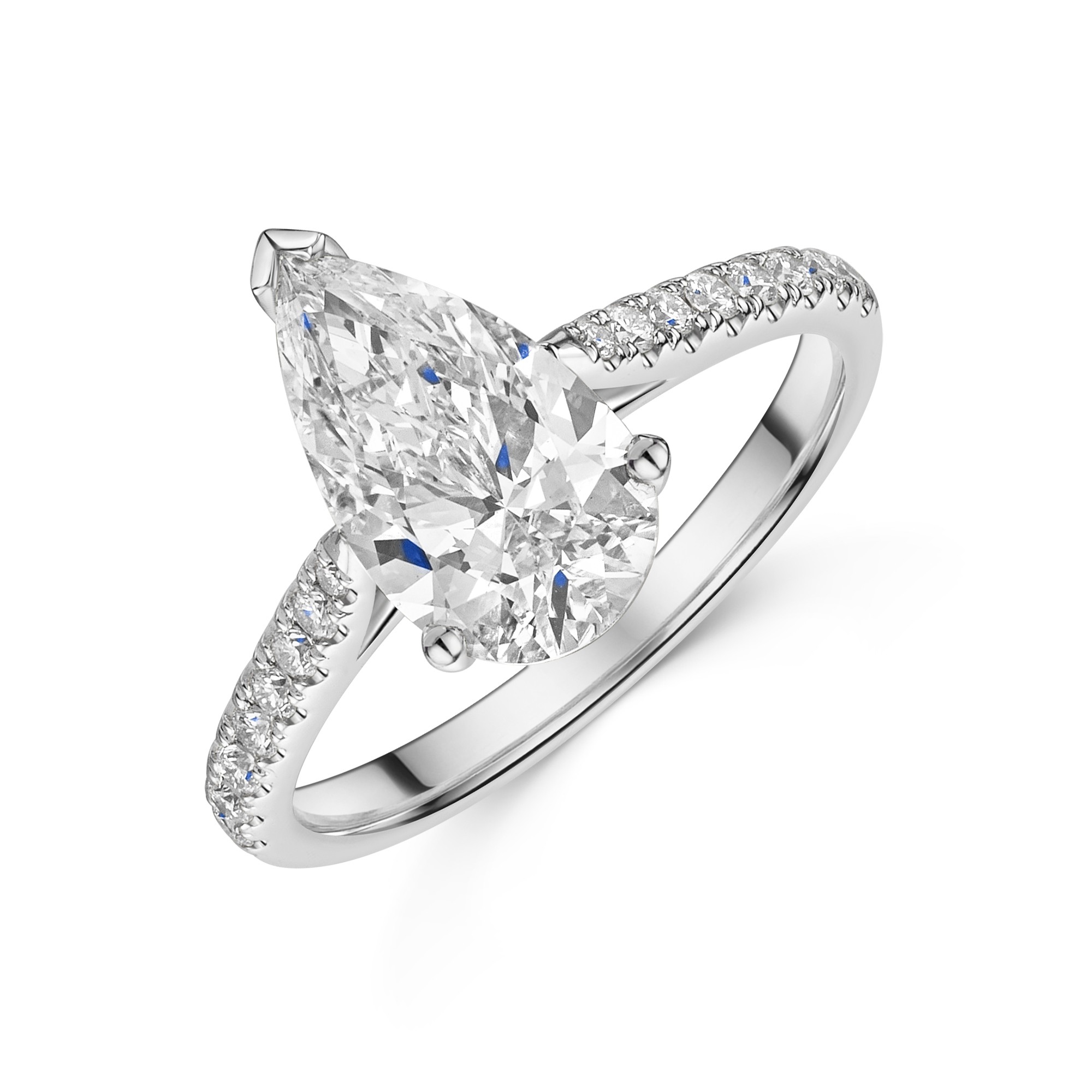 Platinum Pear Cut 2.00ct Lab Grown Diamond Ring with Diamond Shoulders