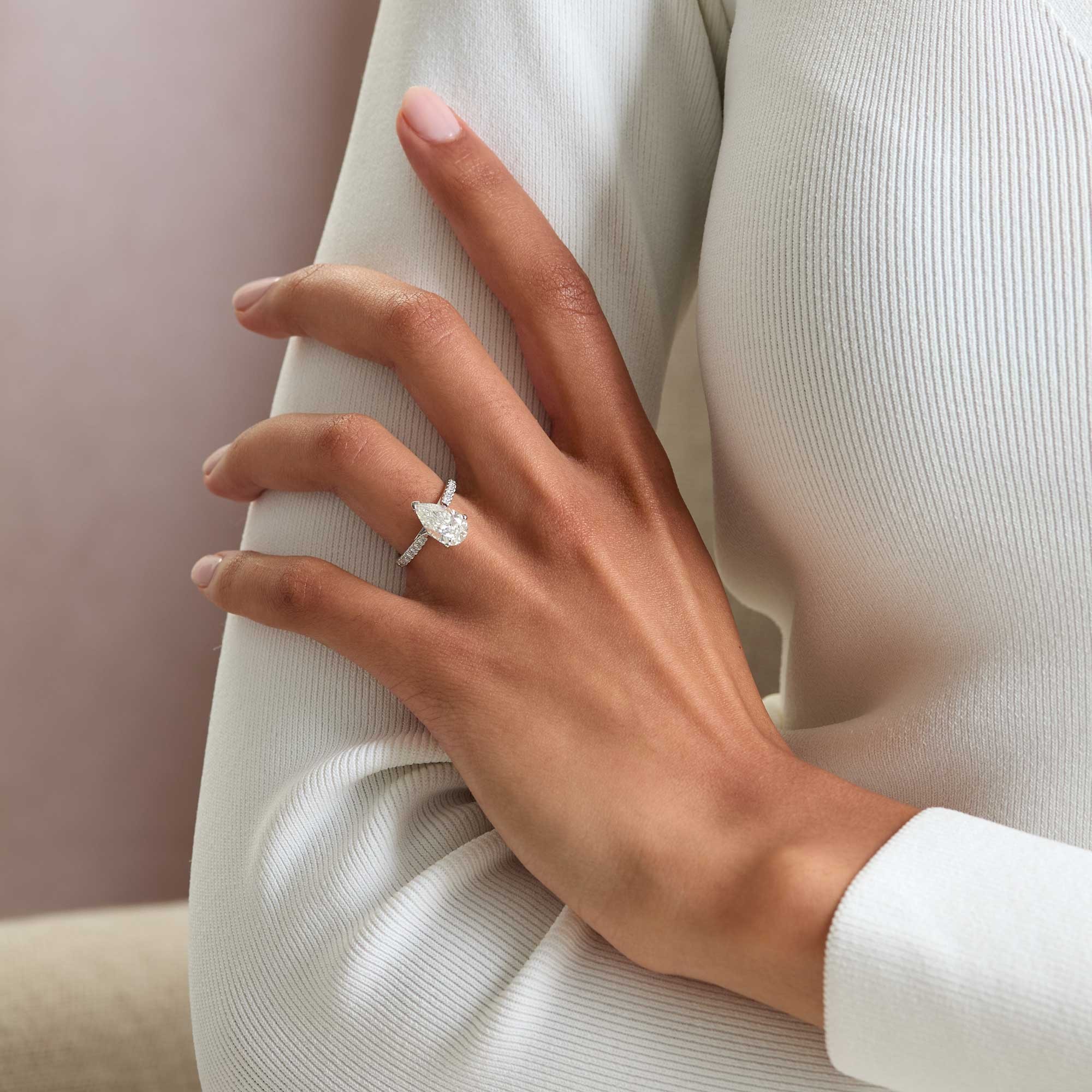 Introducing the exquisite Platinum Pear Cut 2.00ct Lab Diamond with Diamond Shoulders, a stunning choice for any special occasion. Crafted from platinum, this piece boasts a remarkable pear-cut lab-grown diamond at its centre, weighing an impressive 2.00 carats.