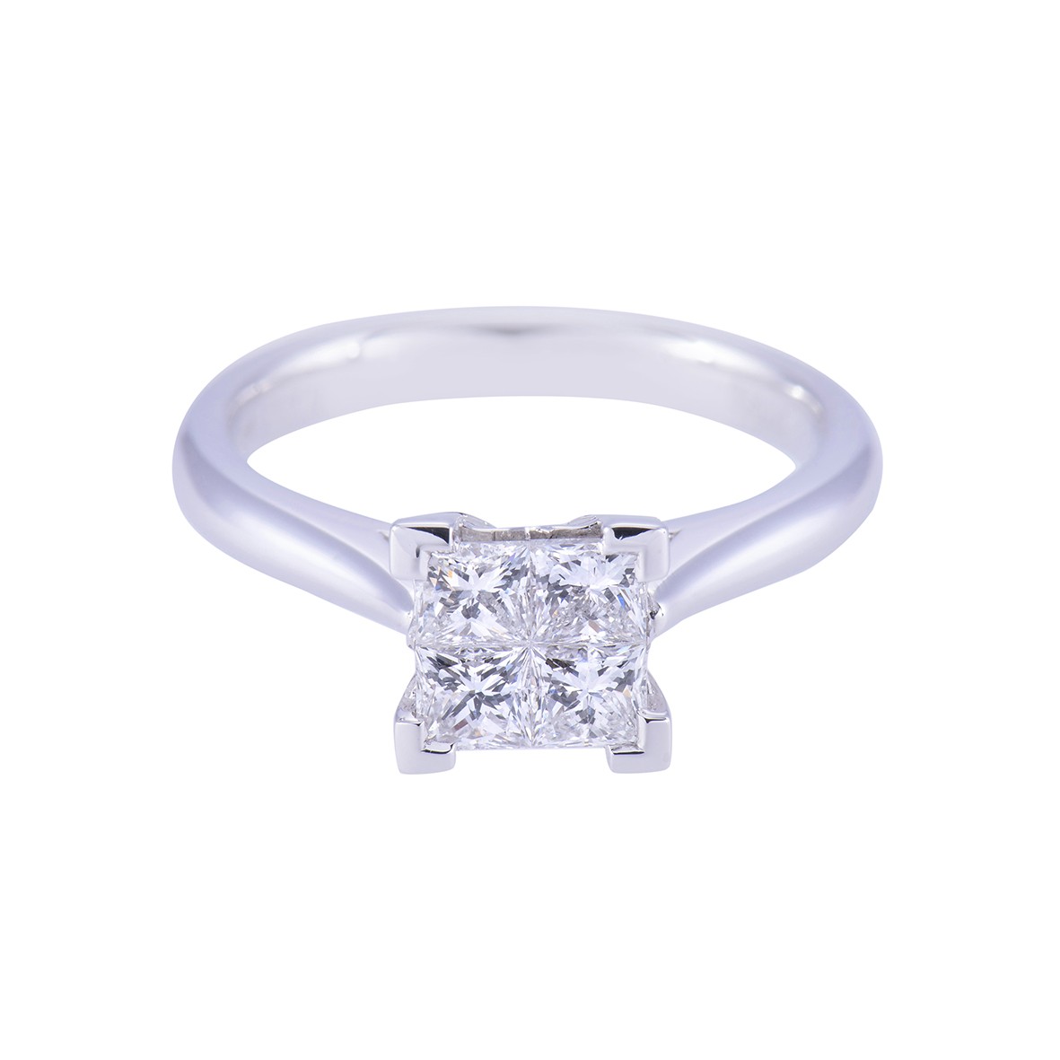 Begin the next chapter with your loved one by proposing with this stunning platinum tile cut cluster ring with a total diamond weight of 0.75ct. Displaying a romantic and classic style with its 4 princess cut diamonds, this ring will sparkle from every angle. Diamond Information: Cut- Princess cut, Colour- H-I, Clarity- SI1, Carat- 0.75ct