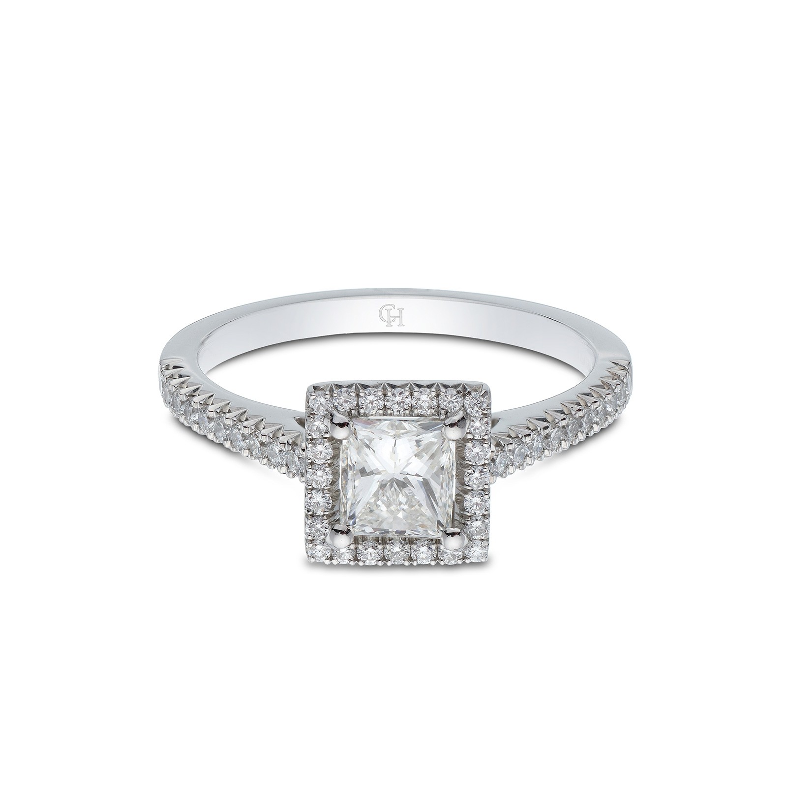 Platinum Princess Cut 1.15ct Diamond Halo Ring