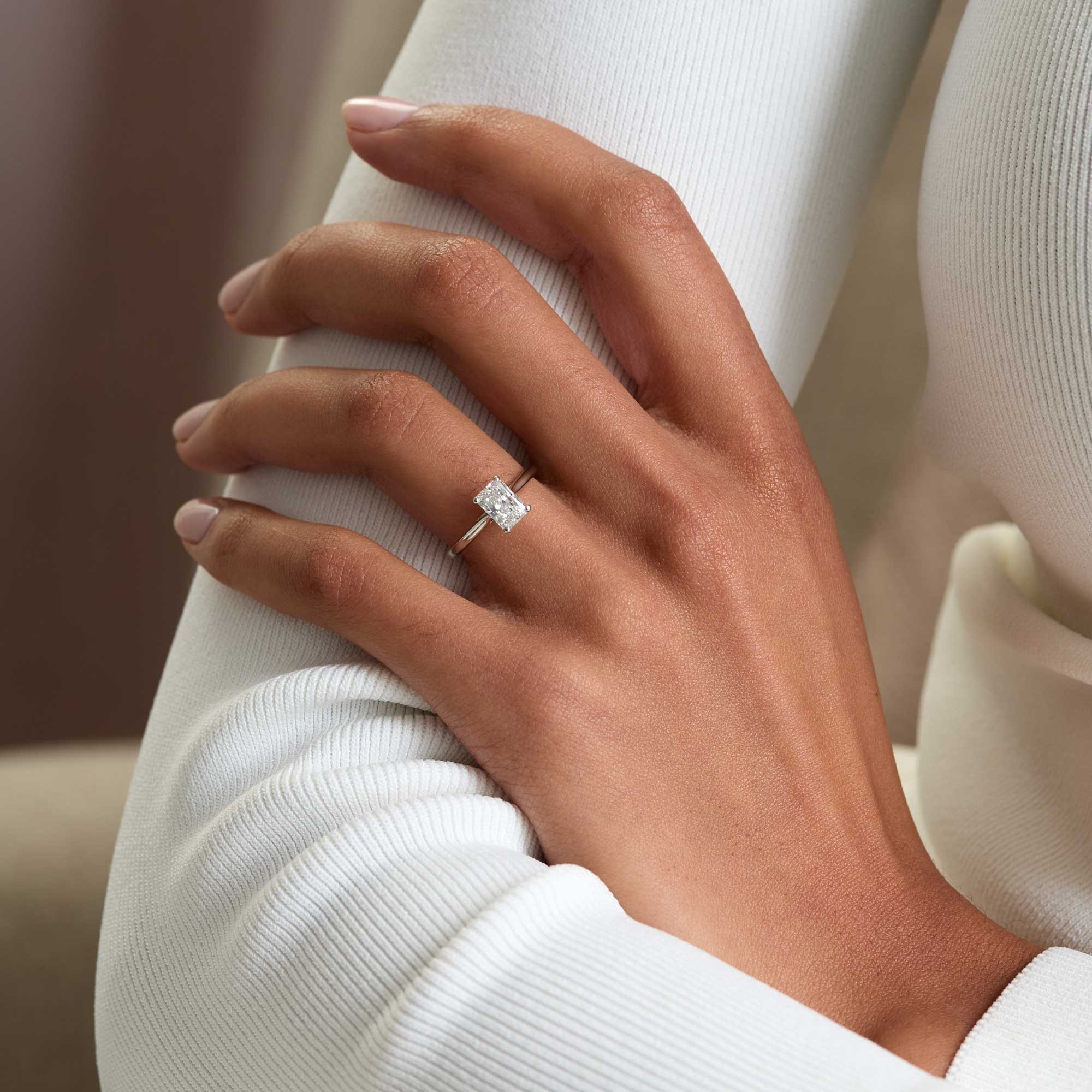 Platinum Radiant Cut 1.00ct Lab Grown Diamond 4 Claw Solitaire Ring