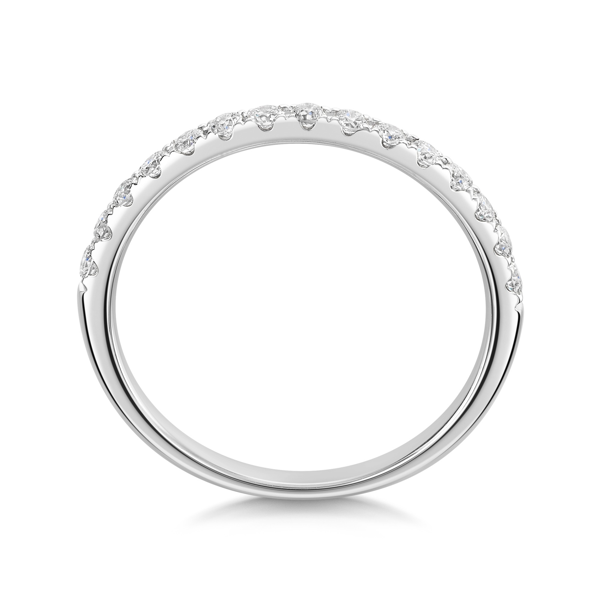 The claw setting enhances the diamond's brilliance while securing each stone for lasting wear. Perfect for anniversaries or special moments, this half eternity ring reflects love and commitment.