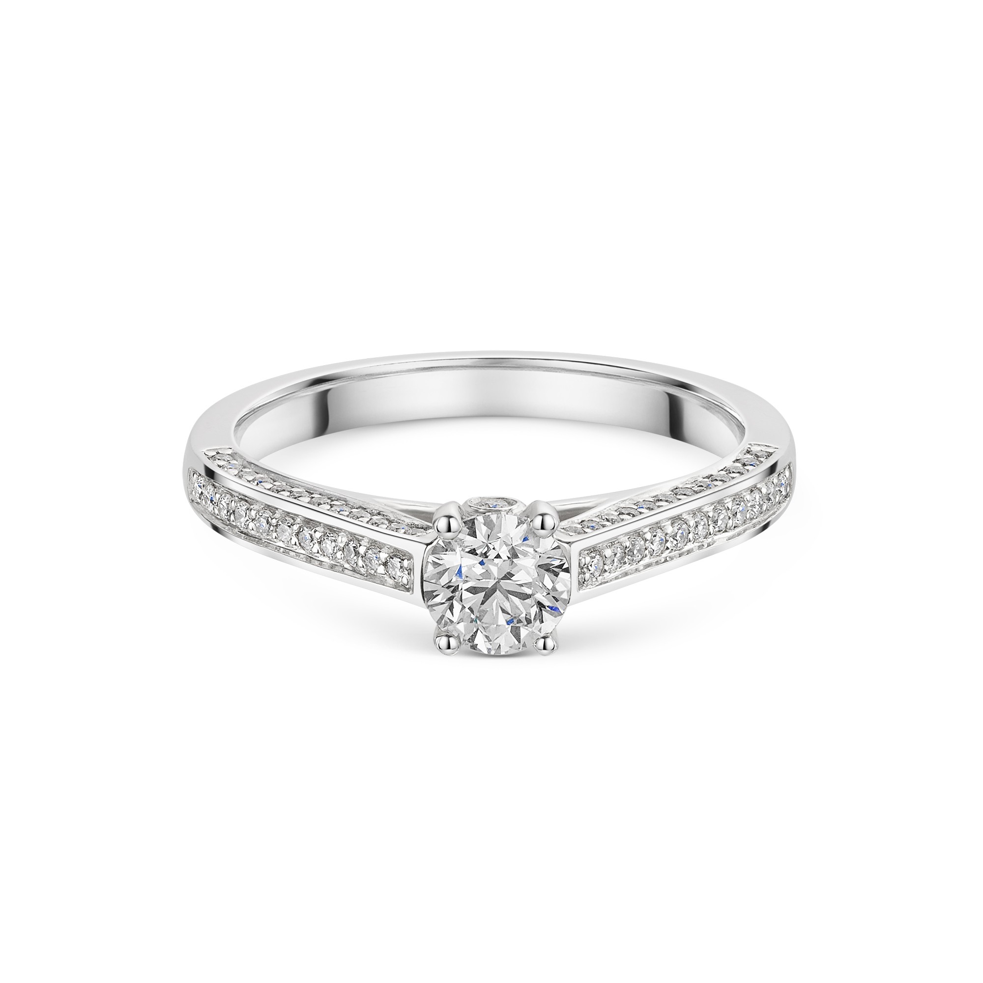 Platinum Round Brilliant 0.50ct Diamond Ring with Pave Set Shoulders Platinum Round Brilliant 0.50ct Diamond Ring with Pave Set Shoulders Platinum Round Brilliant 0.50ct Diamond Ring with Pave Set Shoulders