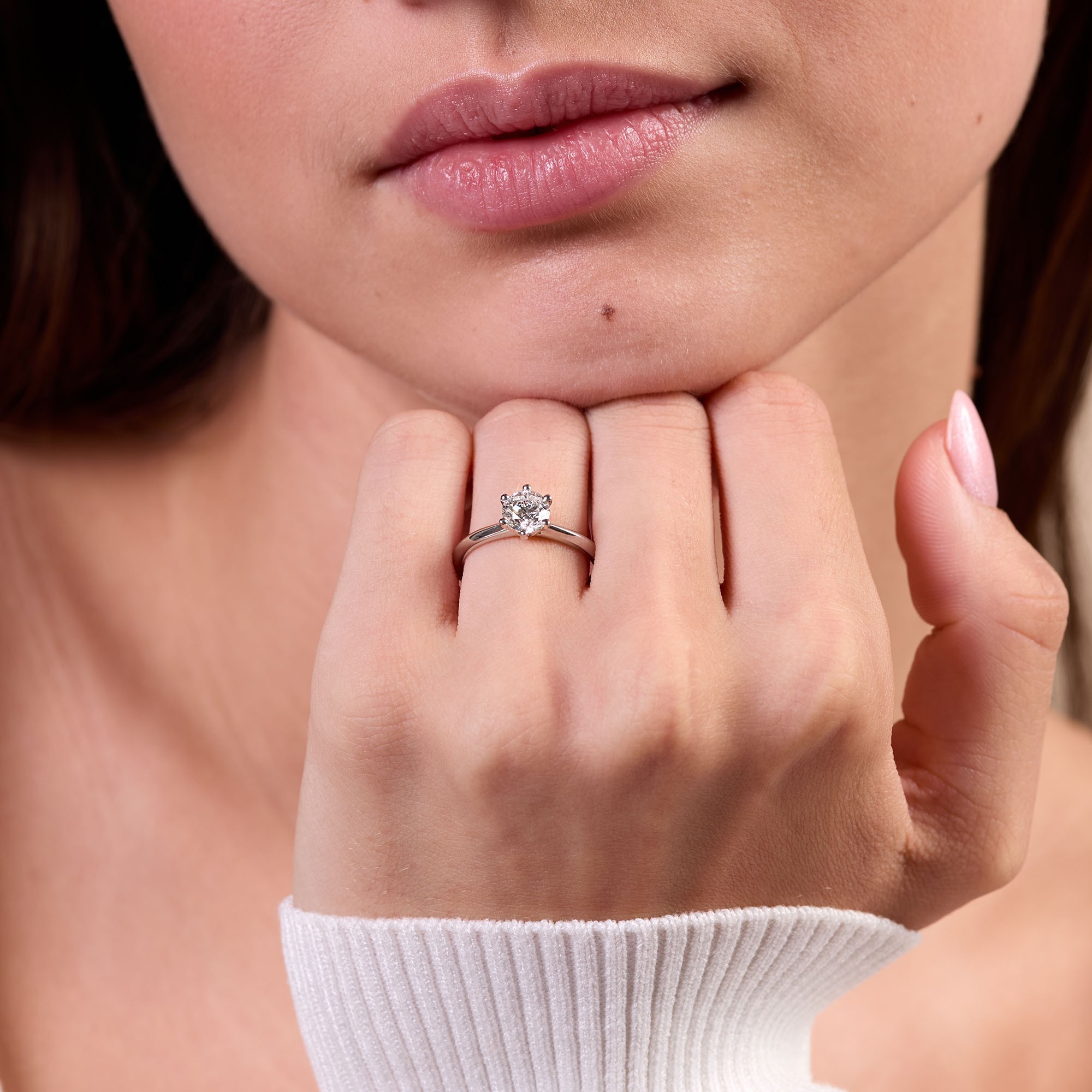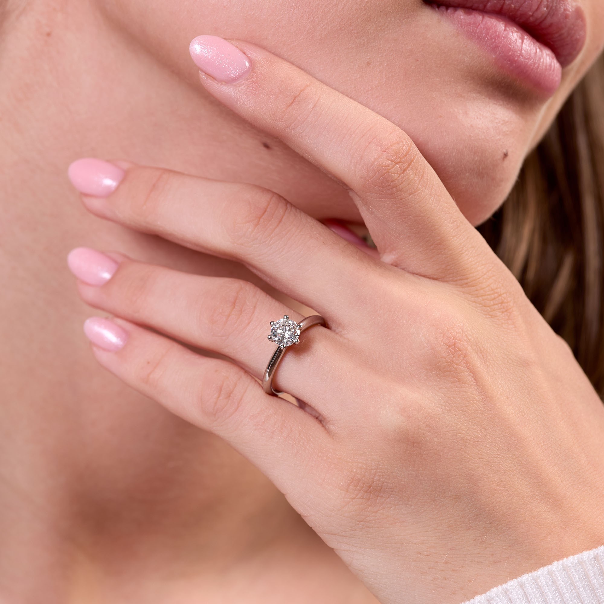 Crafted with meticulous attention to detail, this ring features a breathtaking round brilliant cut diamond, which radiates an unparalleled sparkle that will leave you enchanted. The diamond features a clarity of SI1, ensuring that every facet catches the light, creating a dazzling display of brilliance.