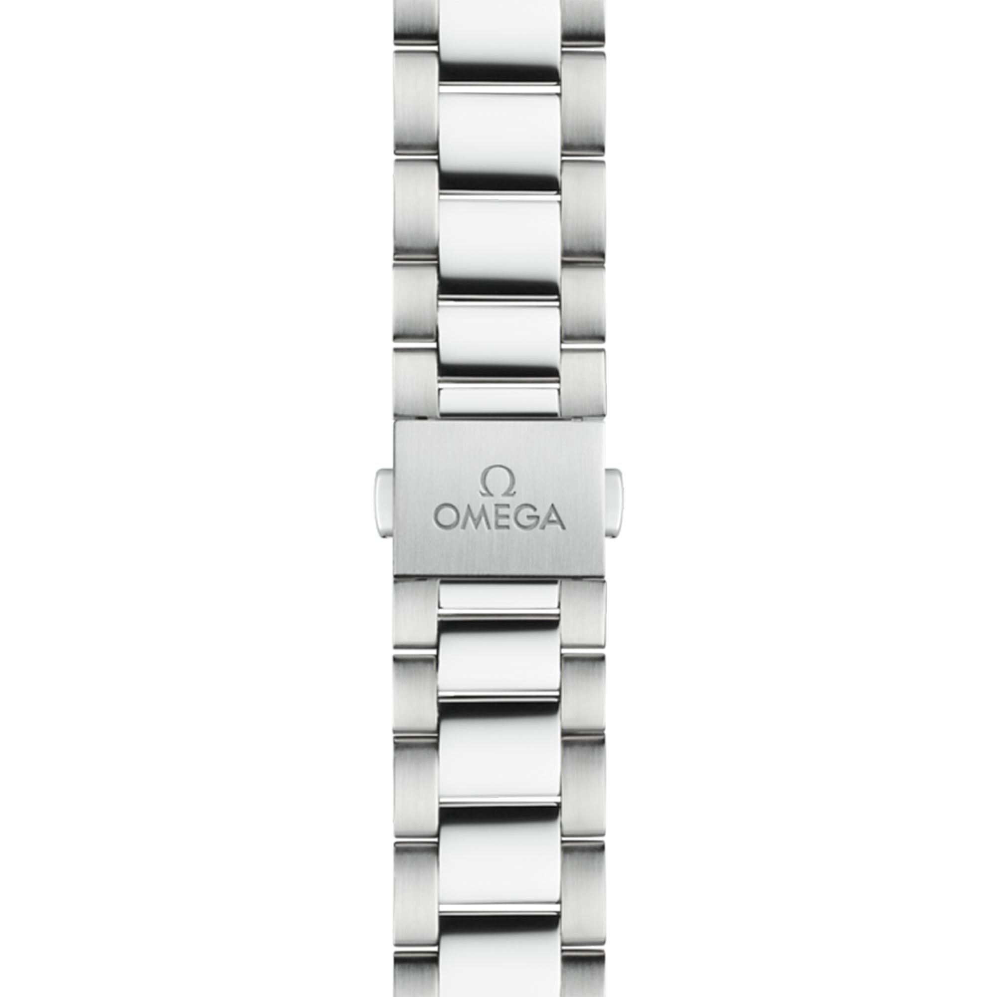 A vibrant blue is used for the central seconds hand and the four quarter numbers on the minute track. This watch is presented on a beautifully polished and brushed stainless steel bracelet powered by the Swiss made OMEGA Master Chronometer Calibre 8900. Water resistant to 150m.