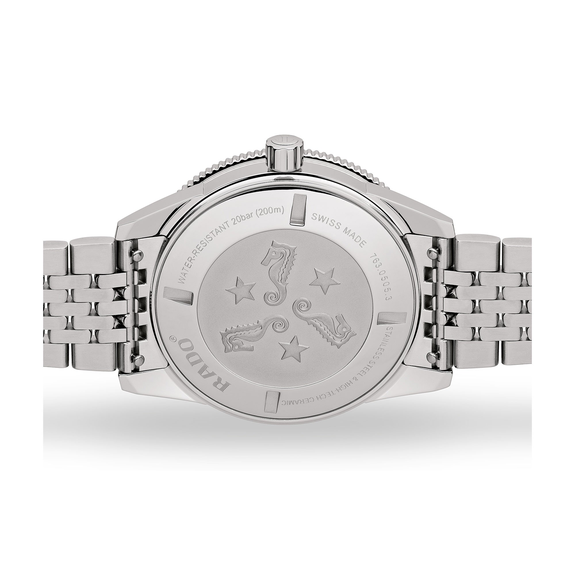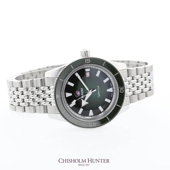 Introducing the Rado Captain Cook Automatic watch. The new and improvement remake of the original 1962 classic. This retro style is upgraded with modern features, giving the wearer the best of both worlds. This addition to the collection features a 42mm stainless steel case with modern stainless steel and high tech green ceramic bezel for scratch resistance. The dial is in matching green with white indexes to mark each hour clearly. A red date display can be found at 3 o’clock with classic rocking anchor located at 12 o’clock in stylish purple. The anchor can be found on all Rado watches powered by a quality Swiss automatic movement. This watch has an impressive power reserve for 80 hours. All materials have been designed to stand the test of time in Rado watches including the sapphire crystal glass that protects the dial and movement within. Designed to last forever. A modern, anti-reflective coating has been added to the glass. This look is completed by a luxurious, stainless steel bracelet with deployment clasp for easy wear, day or night. The bracelet can be adjusted in any of our Chisholm Hunter stores by highly trained staff. This watch is water resistant up to 200 meters with screw down crown and back casing. Every Rado timepiece comes with a branded presentable box and a 2-year warranty.