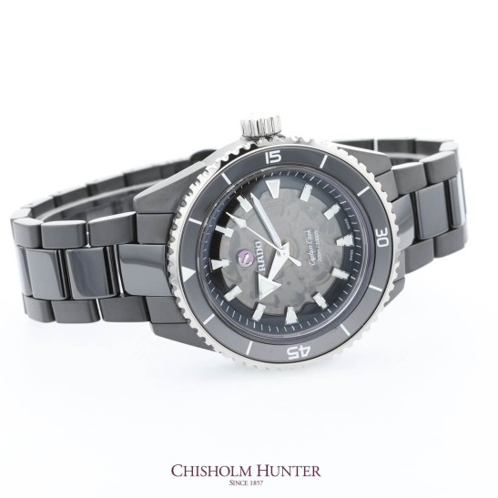 Sleek, innovative and practical: this Captian Cook will set your on a journey to watchmaking excellence. The further development of the Captain Cook collection in high-tech ceramic is Rado’s DNA in its purest form. It features some of the brand’s most stellar achievements such as Rado’s innovative high-tech ceramic monobloc case construction, scratch-resistant and hypoallergenic high-tech ceramic, powered by the premium Rado calibre R734 featuring a Nivachron™ hairspring. The innovative Nivachron™ hairspring provides an advantage in everyday life by protecting the timepiece from magnetic fields.