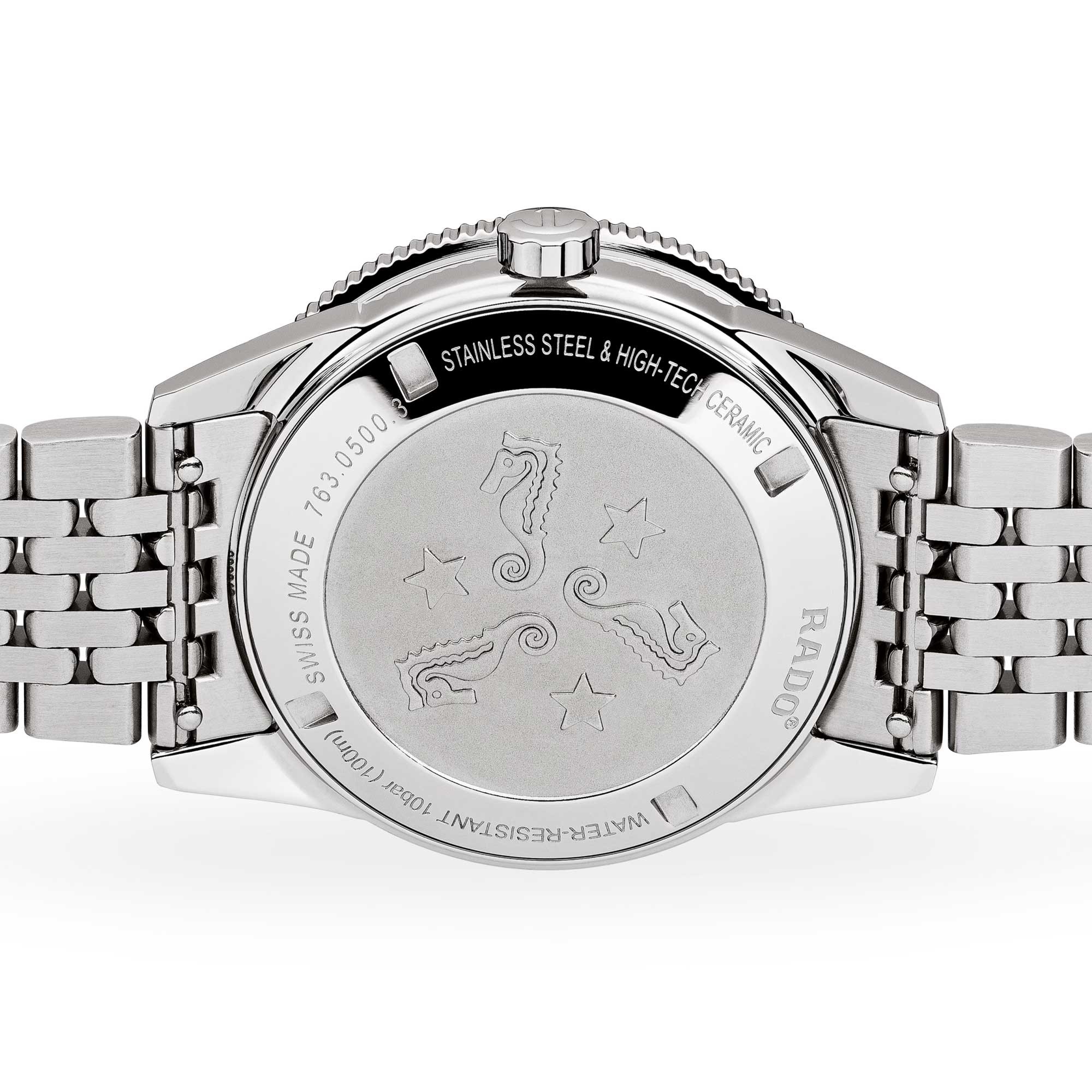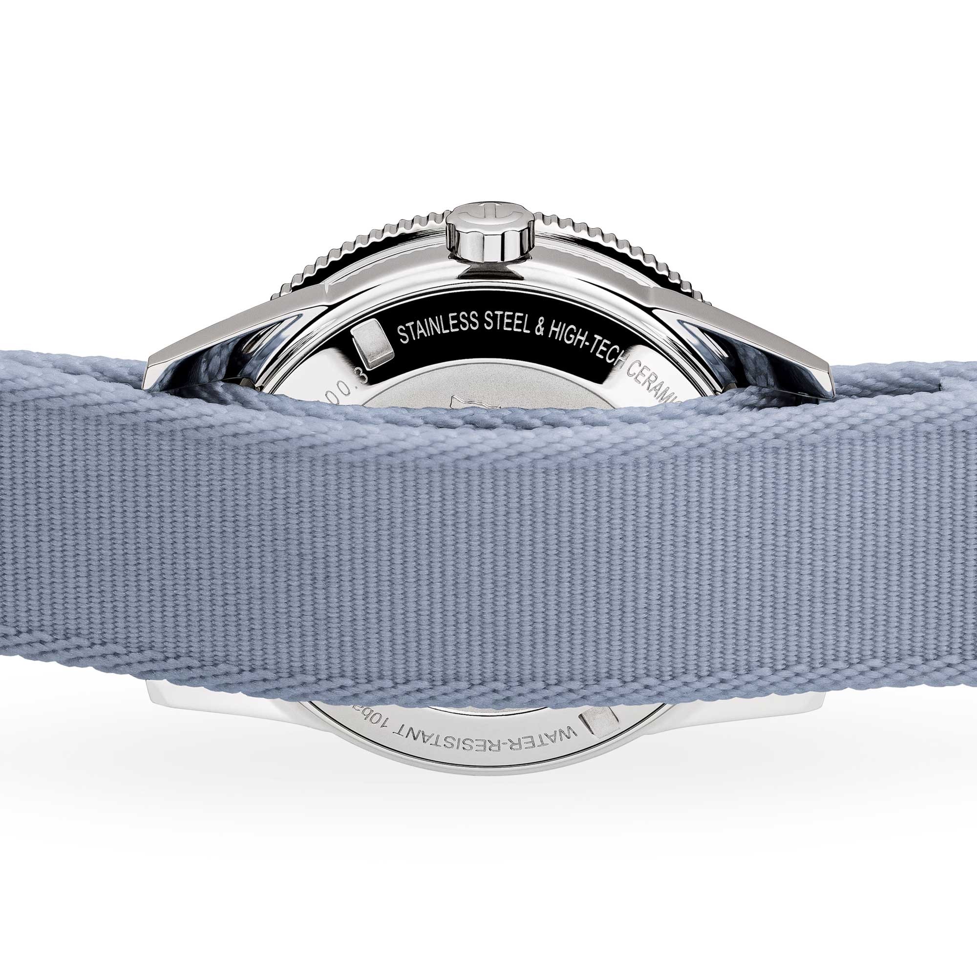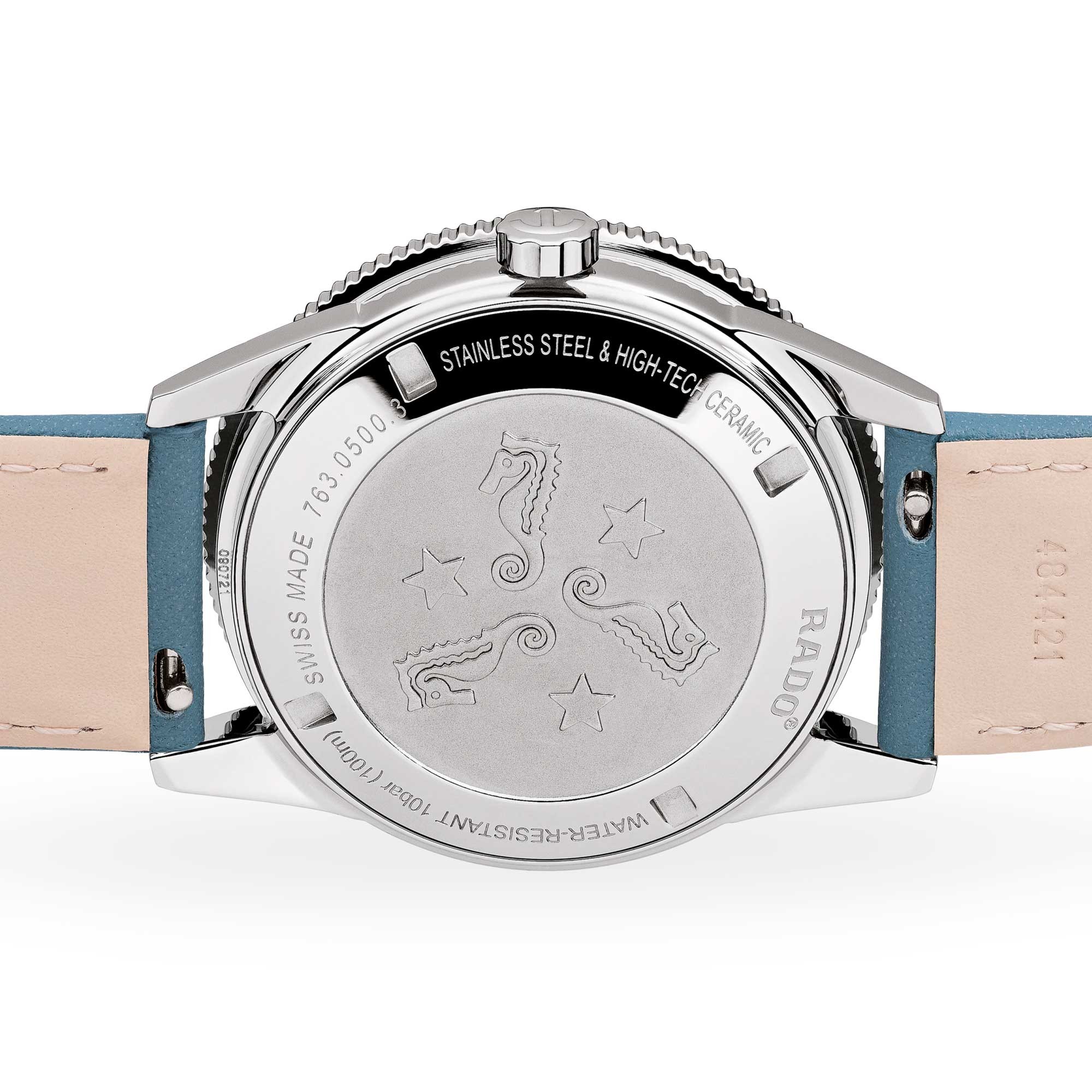 The new Rado Captain Cook Automatic is a contemporary interpretation of the iconic Rado timekeeper. Eight ice-blue sapphires are set as hour markers on a snowy white dial framed by a bezel with a white high-tech ceramic inlay. It comes with three straps – a rice grain stainless steel bracelet, light blue Nato strap, or blue leather strap with blue stitching – which can be easily and quickly exchanged thanks to Rado’s EasyClip system.
