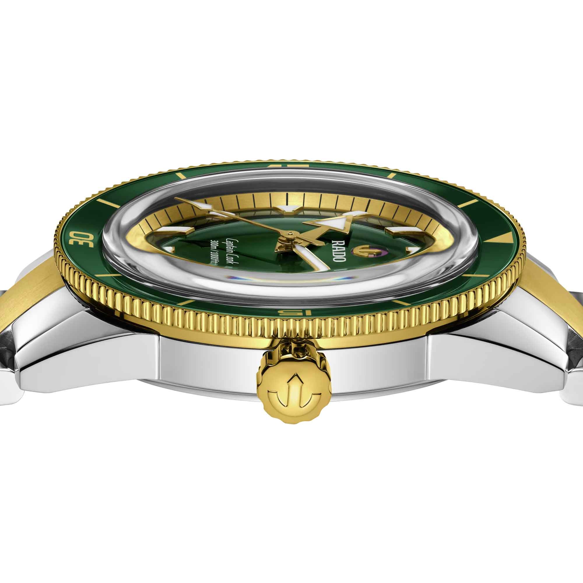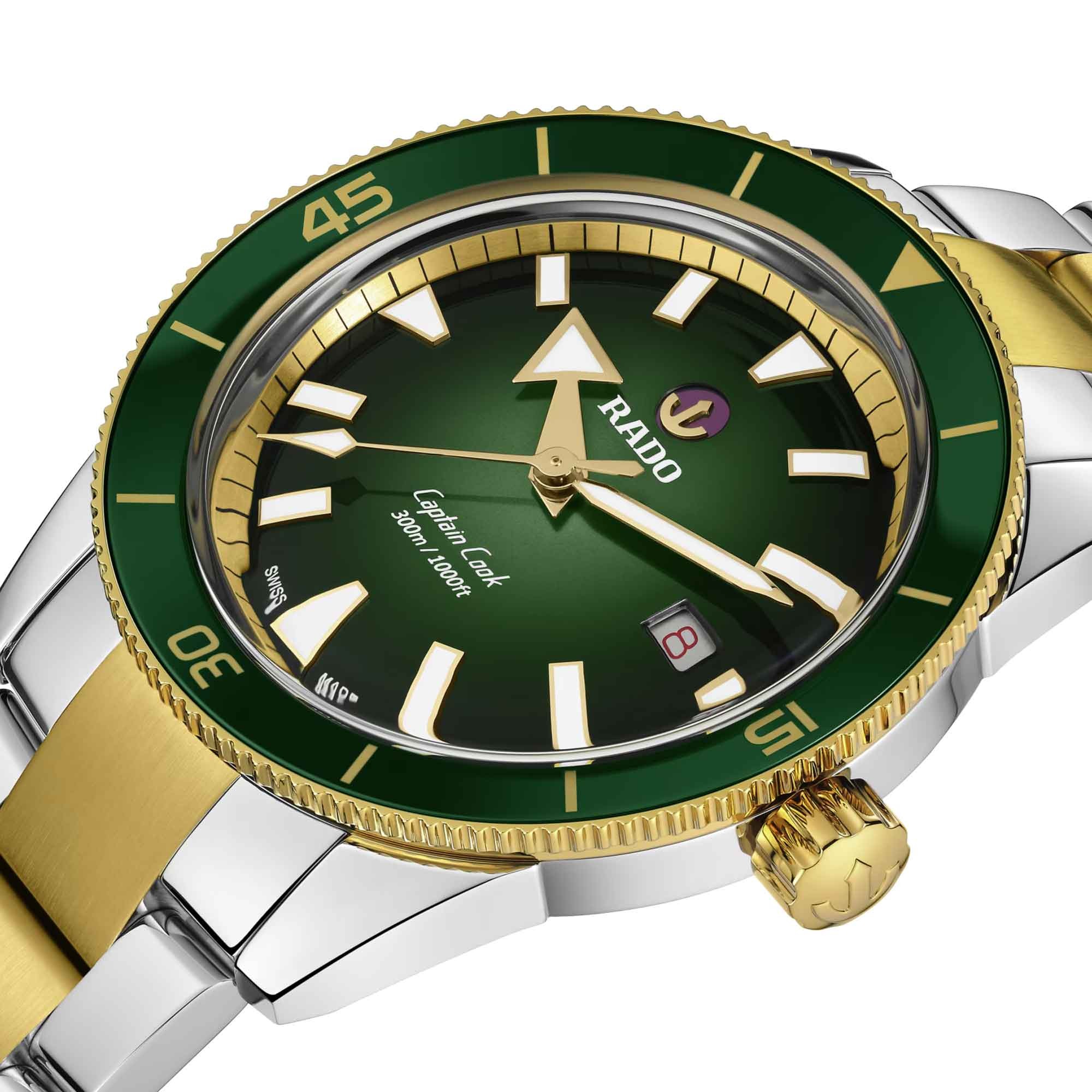 Rado Captain Cook Mens Watch R32138303 Green Dial YG Steel Bracelet