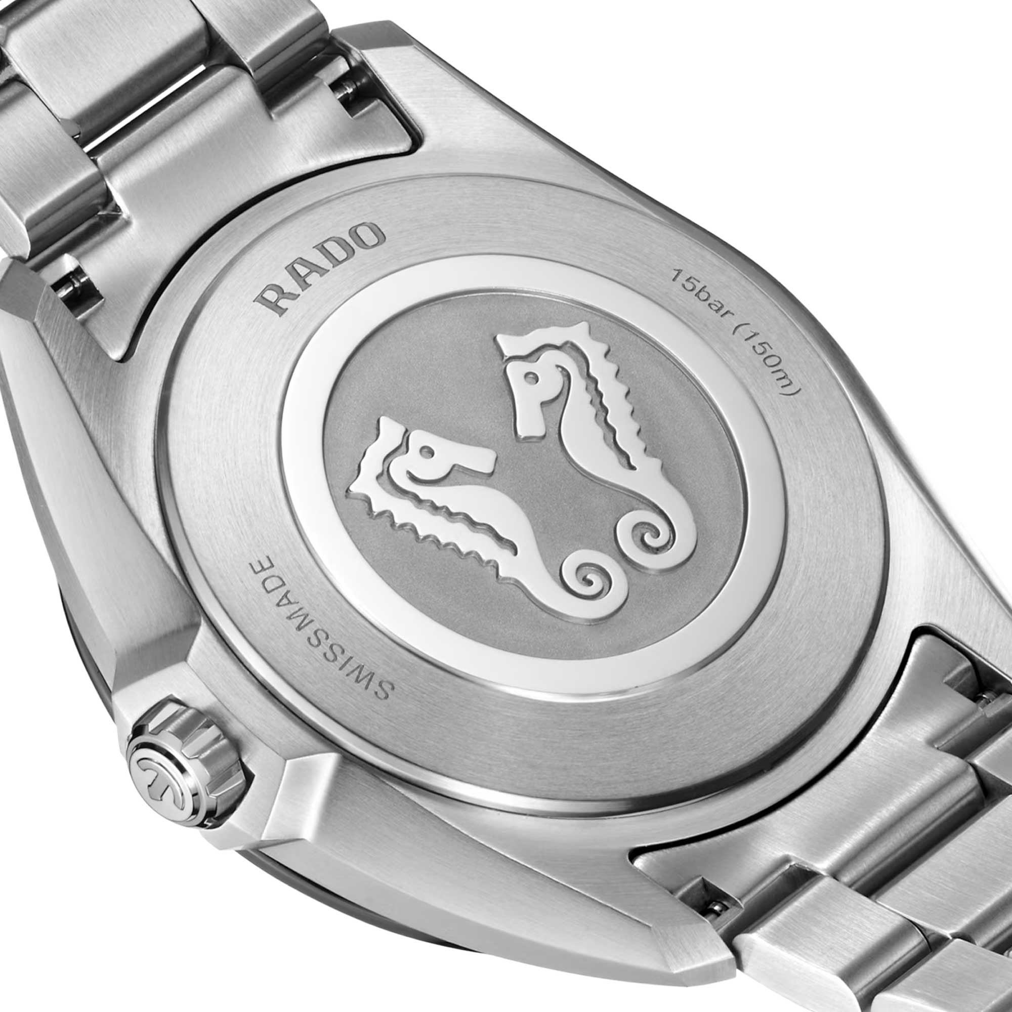 At the heart of the watch, the Rado calibre R292 ensures exceptional accuracy and reliability. This 3-jewel quartz movement combines PreciDrive and HeavyDrive technologies, enabling precise regulation of each impulse and maintaining a deviation of no more than ±10 seconds per year. A discreet date window at 3 o’clock integrates seamlessly into the dial’s balanced design. The dark blue sunray dial offers a refined contrast to the rhodium-coloured hour and minute hands, as well as the applied indices —all treated with white Super-LumiNova® for optimal legibility in low light.