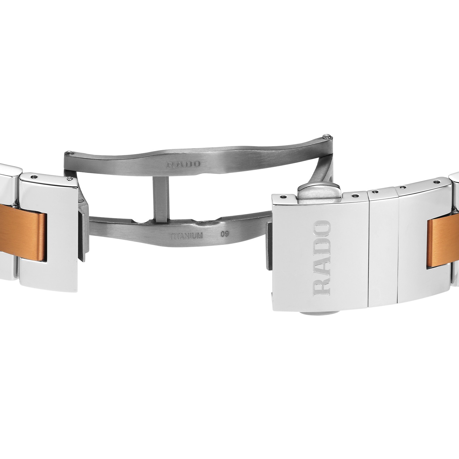 The Rado Hyperchrome Chronograph 44.9mm Quartz Mens Watch R32259173 is a masterpiece of modern design and cutting-edge technology. Crafted with the utmost precision and attention to detail, this watch presented on a 3-row polished stainless steel bracelet with rose gold coloured brushed middle links, is a true reflection of Rado's commitment to excellence.
