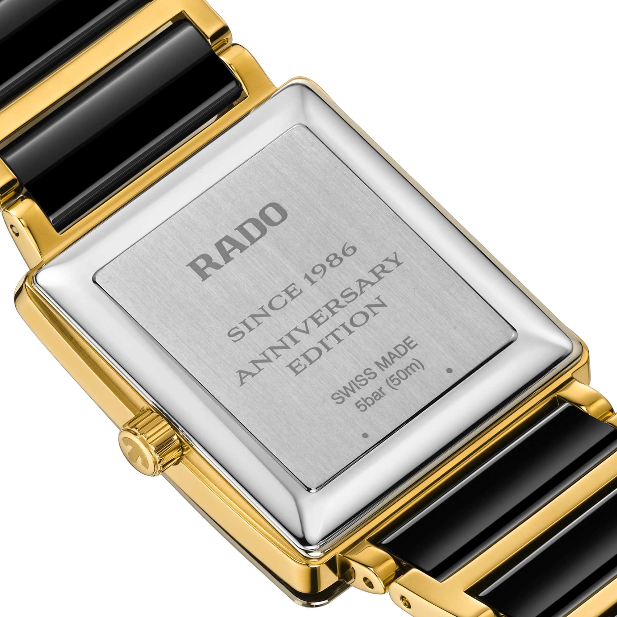 Precise metallisation accentuates the Integral’s famously square face on the crystal, while a special engraving on the case back reads ‘Since 1986, Anniversary Edition’. A classic Rado design, evolved for modern tastes yet faithful to its pioneering predecessor.