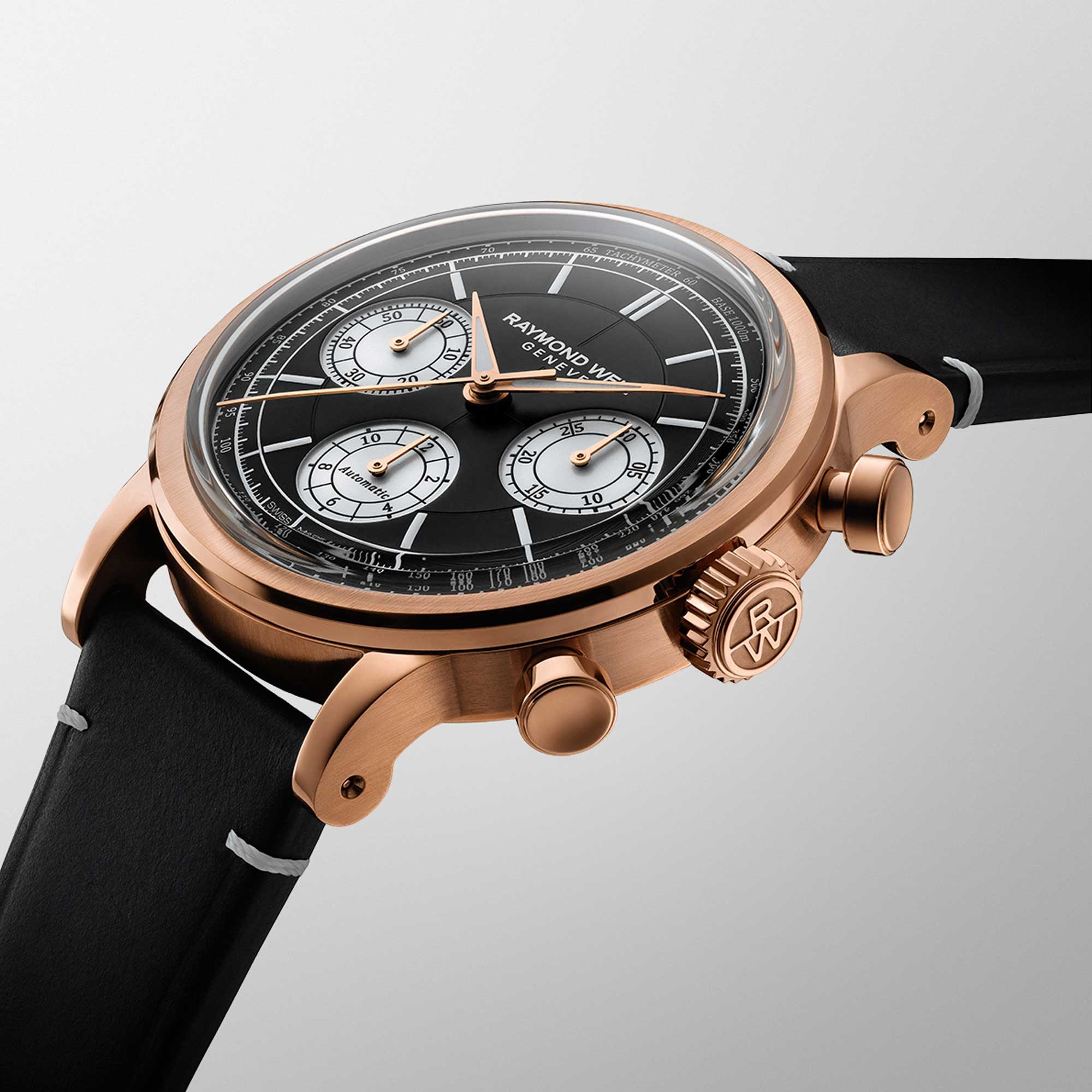 The 39mm stainless steel with rose gold PVD coating case encompasses a combination of smooth and snailed contrasting finishes and is attached to a genuine calf leather strap. At the heart of the millesime tri-compax chronograph sits the RW5030 mechanical chronograph self-winding movement. Visible through the exhibition case back, this automatic movement has a power reserve of 62-hours, ensuring accuracy and reliability for all of your adventures.