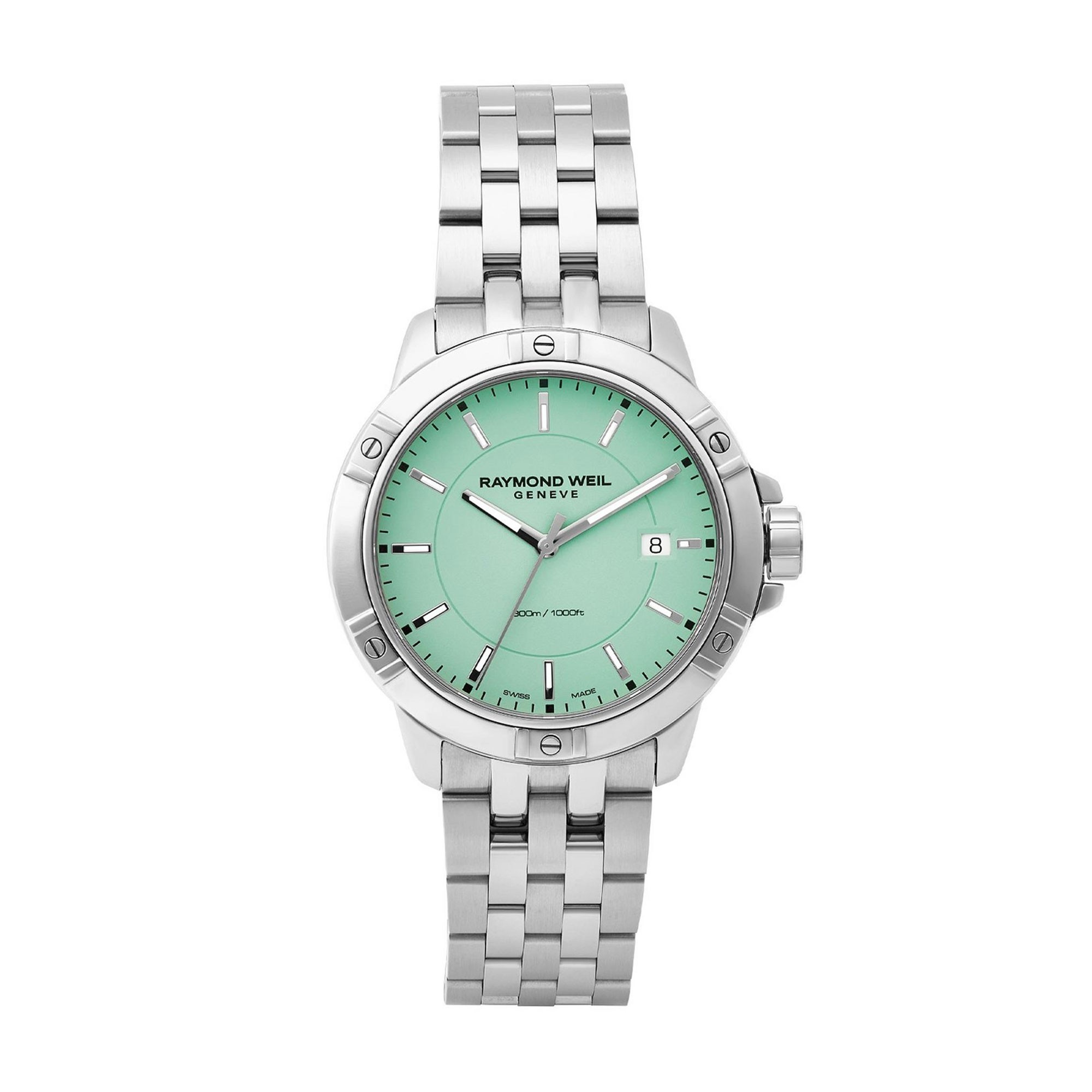 The Raymond Weil Tango 41mm Men's Watch 8160-ST-52021 combines precision and sophistication. Powered by a reliable quartz movement, this timepiece guarantees accurate timekeeping. The striking green dial features elegant baton markers, offering a classic yet contemporary look.