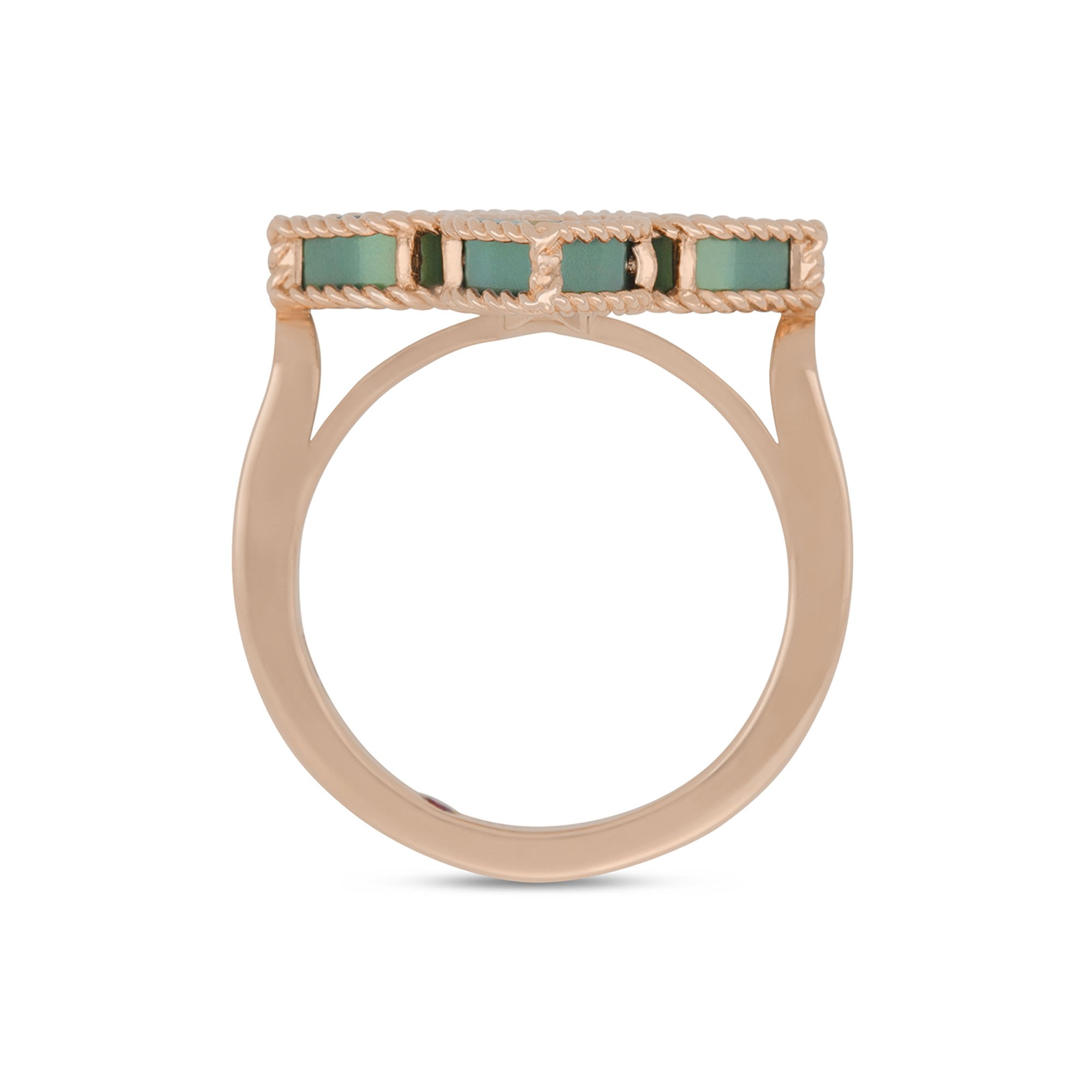 Crafted from the finest 18ct rose gold, this ring's warm hues echo the blush of dawn, providing a soft, feminine touch that complements any outfit. The choice of rose gold is deliberate, not only for its aesthetic appeal but also for its durability, ensuring that this piece remains a cherished part of your collection for generations.
