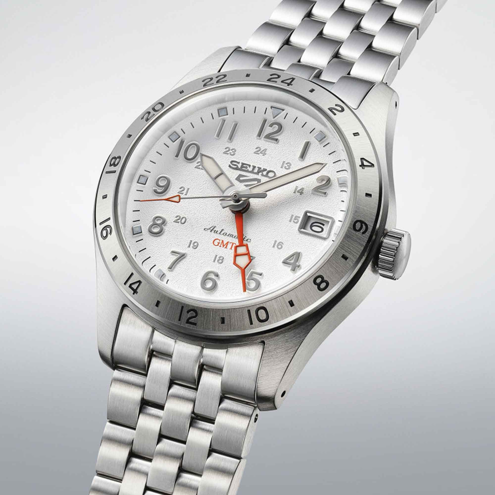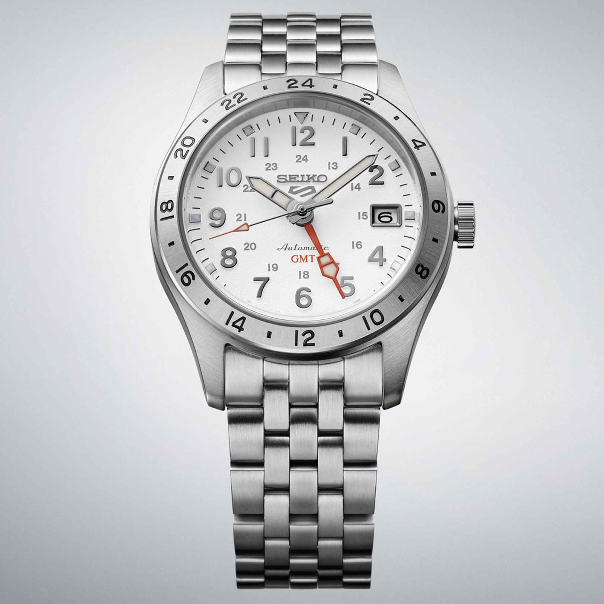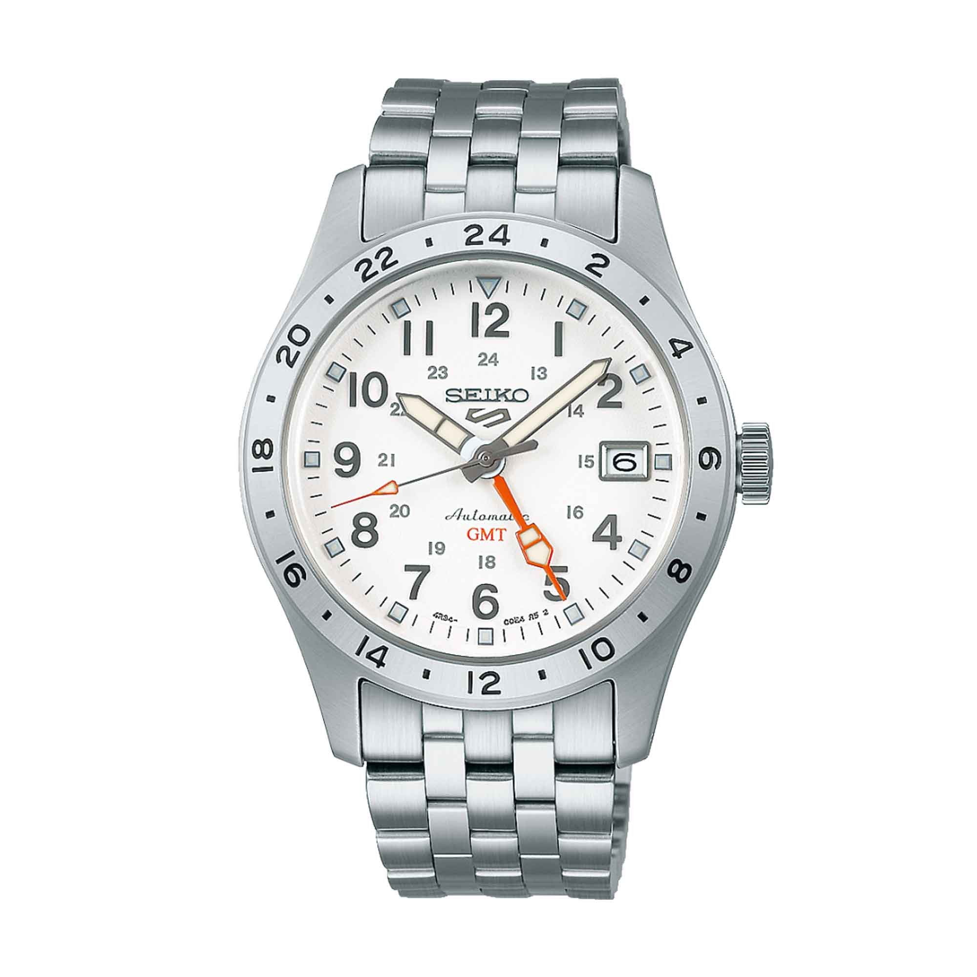 The Seiko 5 Sports Field Series GMT Watch SSK059K1 arrives in Seiko presentation packaging and includes a 2‑year warranty. It is a straightforward, dependable Seiko that brings GMT versatility, strong materials and clear readability into one well-sized case. A confident choice for daily timing across time zones.