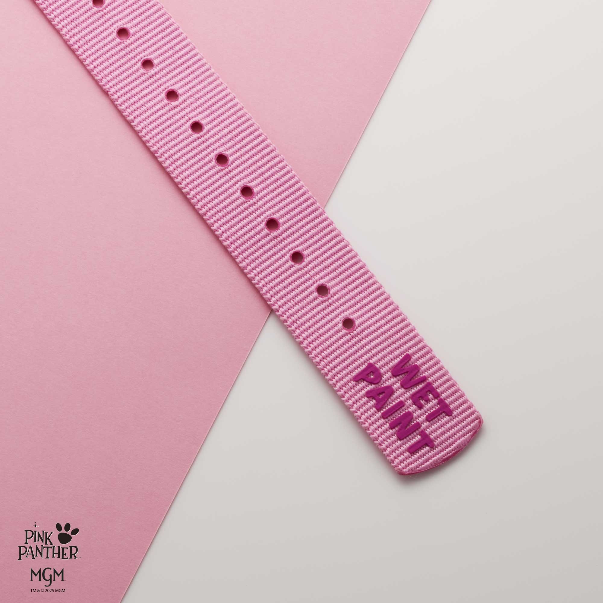 The design takes its cue from ‘The Pink Phink', the very first standalone Pink Panther cartoon episode. In the classic Seiko SKX-style case introduced in 1990, the watch features a bright pink dial with both a bracelet or a matching nylon strap option, complete with the words WET PAINT - a direct nod to the episode’s famous paint prank.