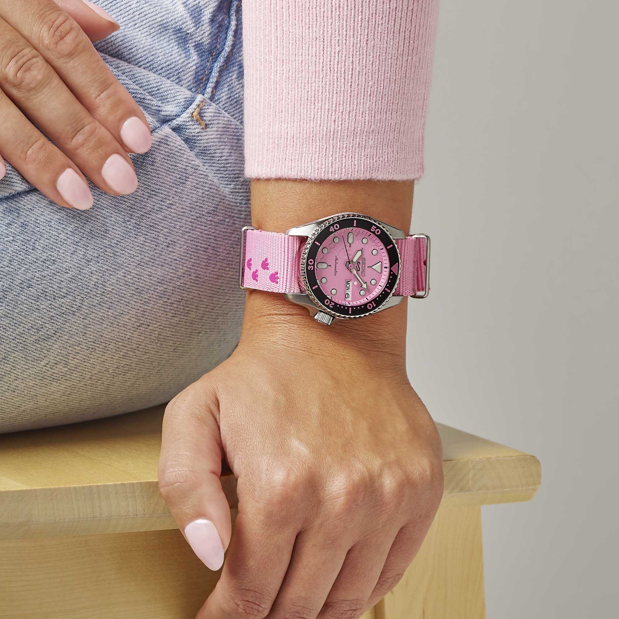 This limited edition watch is the very first exclusive collaboration between Seiko 5 Sports and the globally popular cartoon character, the Pink Panther.​