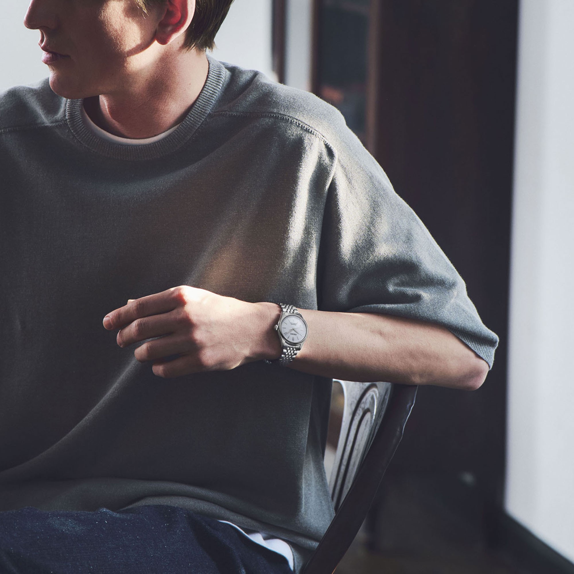 Under dual-curved sapphire glass, the domed dial with curved hands and indices evoke vintage style and are specifically designed to maximise light reflections. Compact in case design, this timepiece is only 36mm.