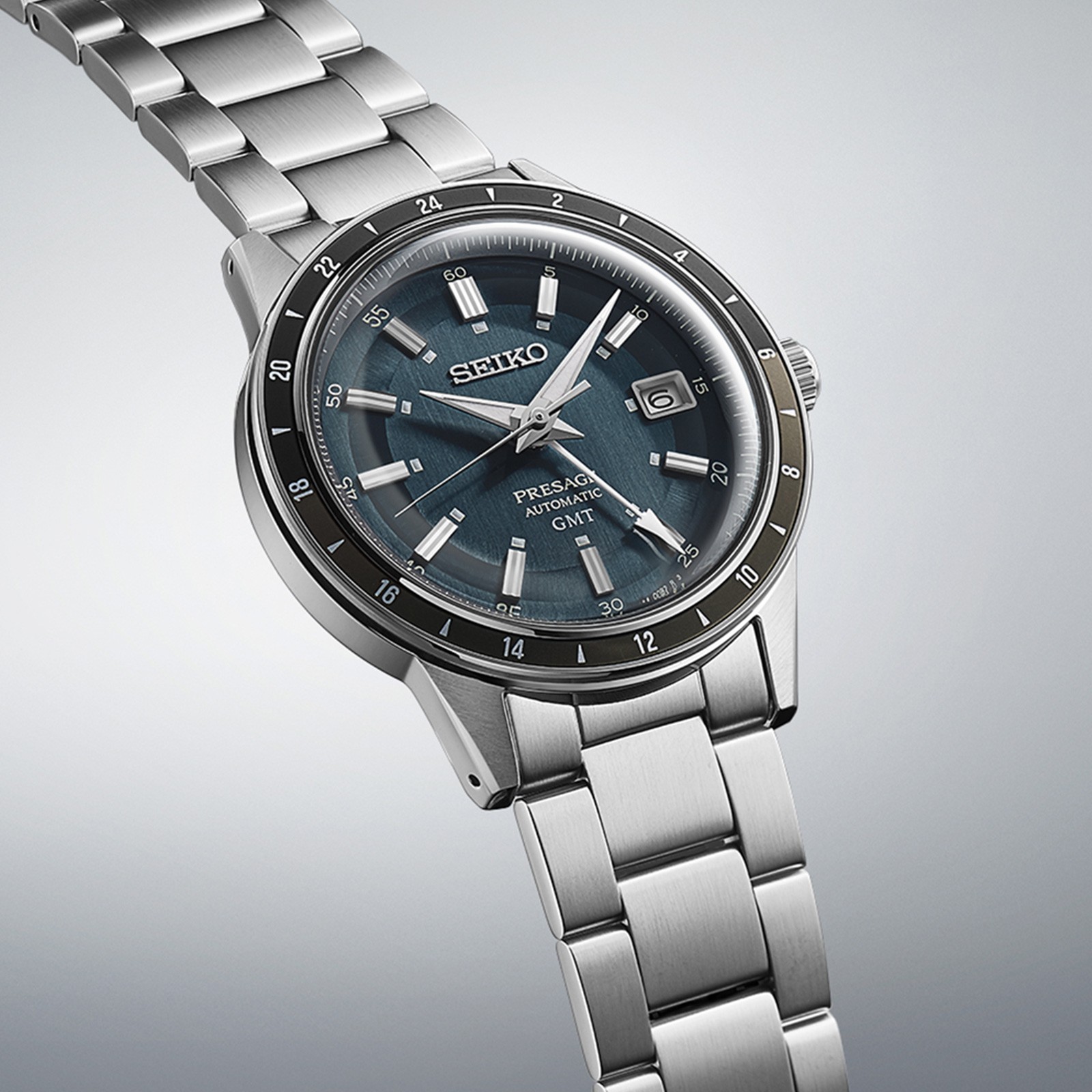 Seiko Presage 'Petrol Blue' Style 60s Road Trip GMT 41mm Mens Watch SSK009J1